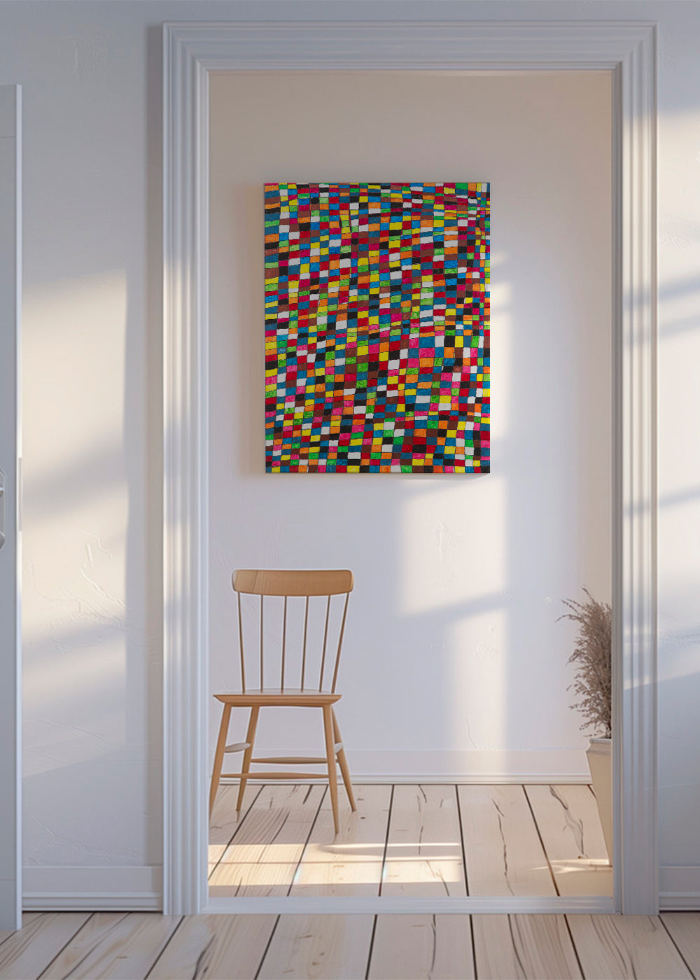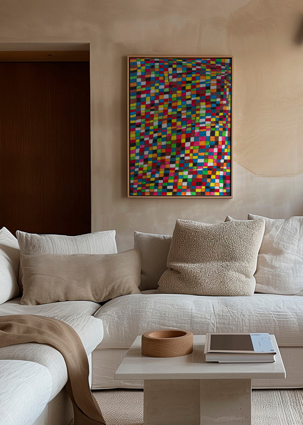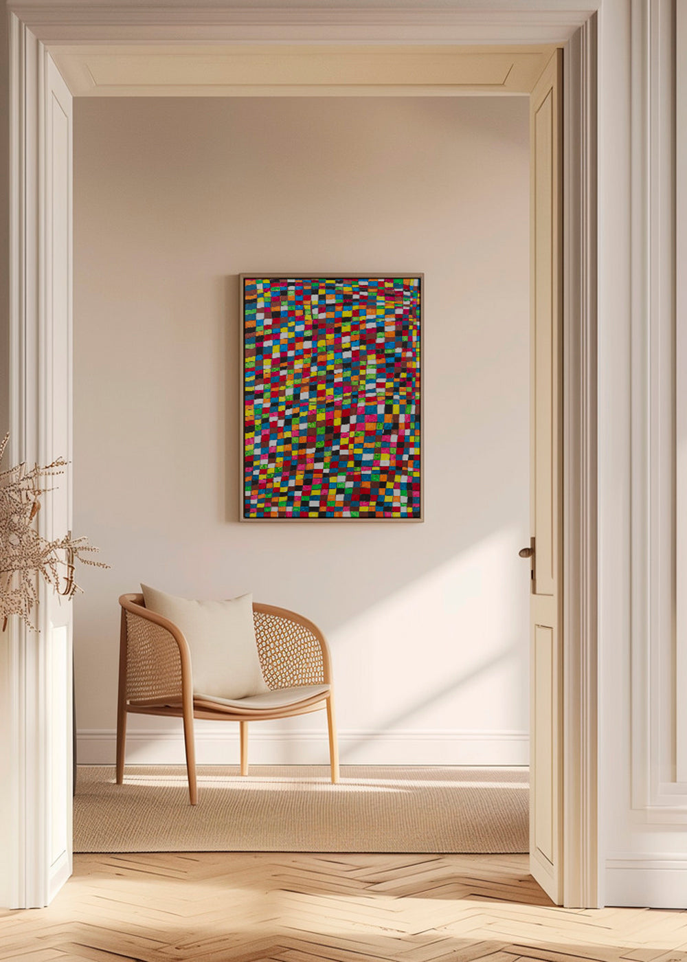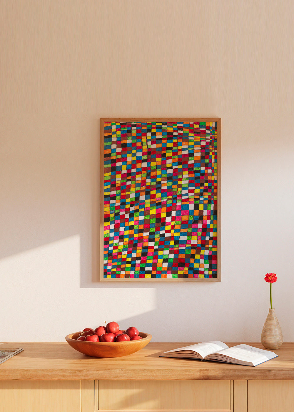 A print from our selection of geometric wall art and prints, created by Fundació Setba, with tones of multicolor, and facing vertically. Geometric art is an elegant style to decorate the walls of your home with. Fill your decoration with art.