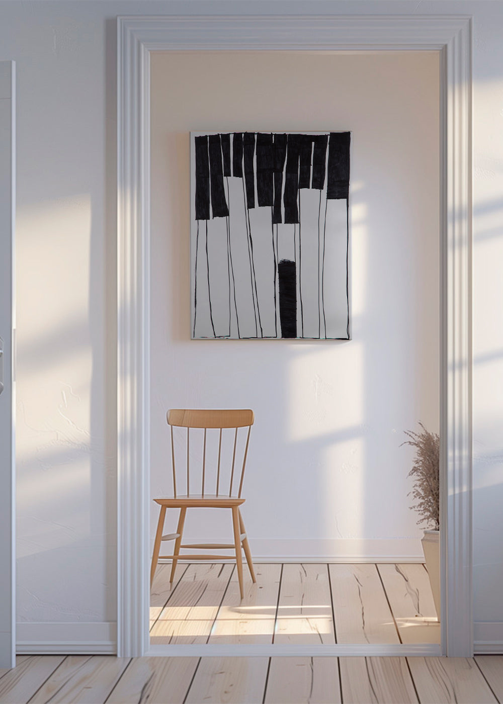 A design from our selection of music themed wall art, from the collection of the artist Fundació Setba, with touches of black and white, and perfect to hang vertically. A perfect piece for spaces bursting with art and creativity. Our drawings are perfect for decorating empty or boring spaces. The final touch for your home decor.