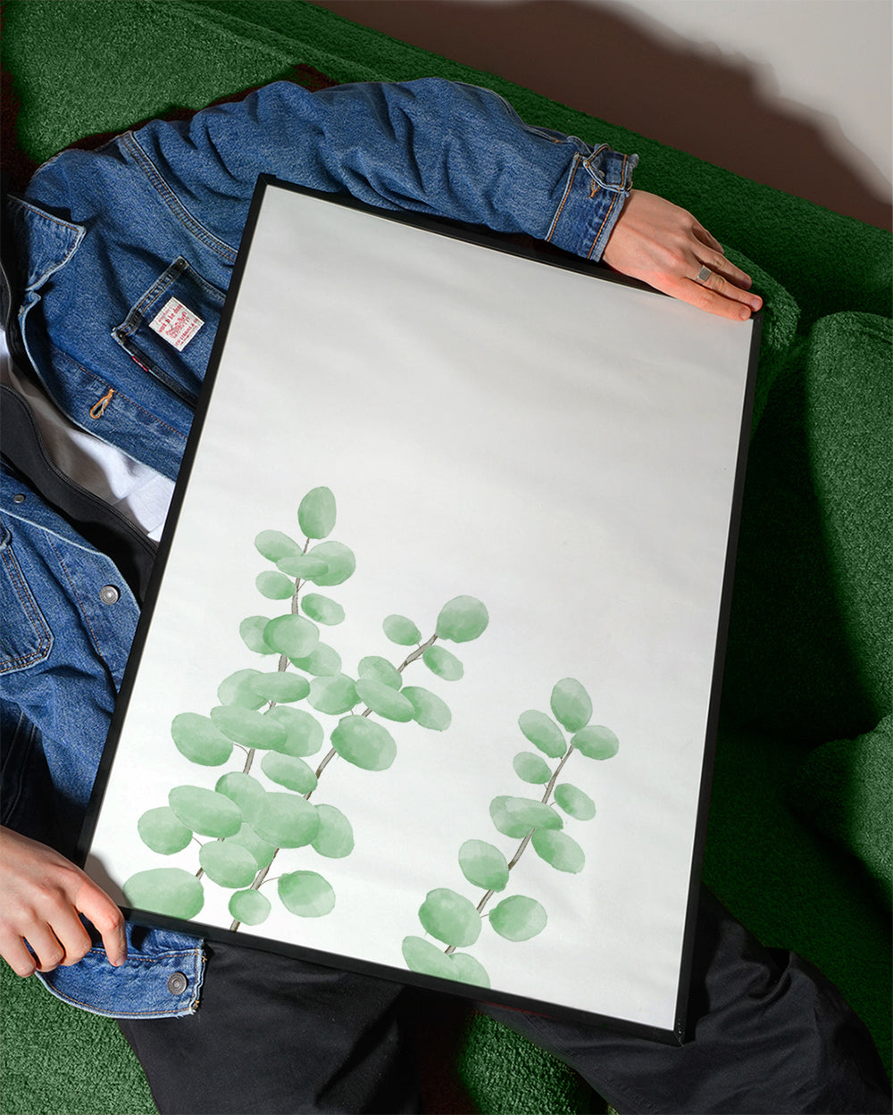 A print from our palm tree prints category, in tones of green, and vertical layout. A perfect piece for spaces bursting with art and creativity. Our drawings are perfect for decorating empty or boring spaces. Get swept away by art.
