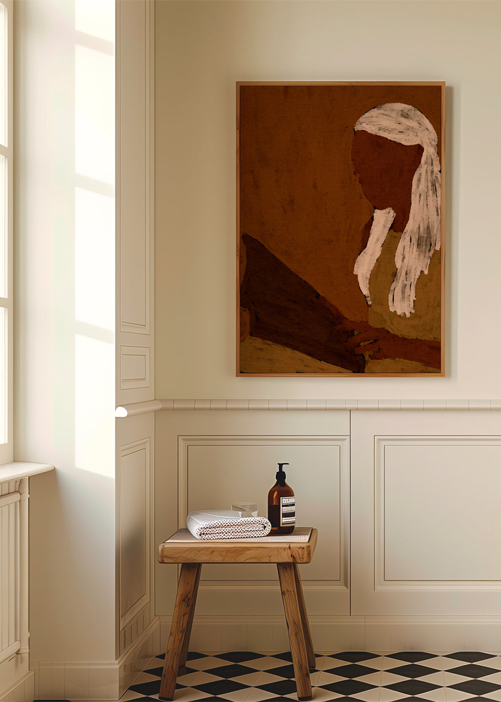 Beautiful design from our girls wall art series, created by Shatha Dafai, in tones of brown, and with vertical layout. Illustrated prints give your home decor a touch of originality. Let art flood your home.