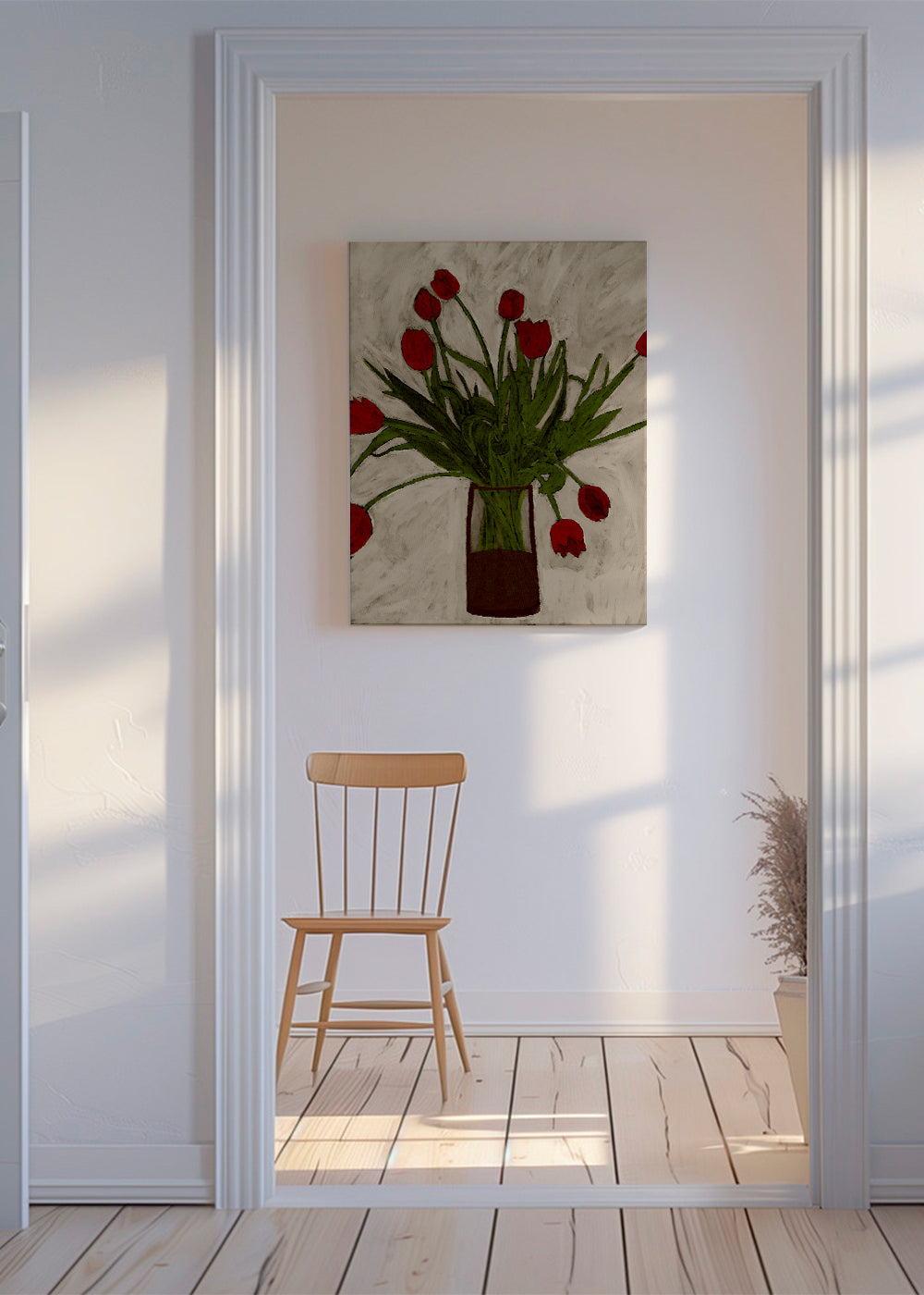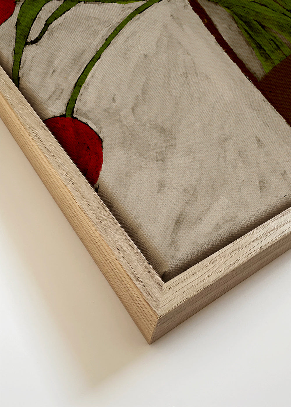 Each canvas is hand-stretched over a wooden frame. The depth is 3 cm for unframed canvases and 4 cm for framed canvases.
