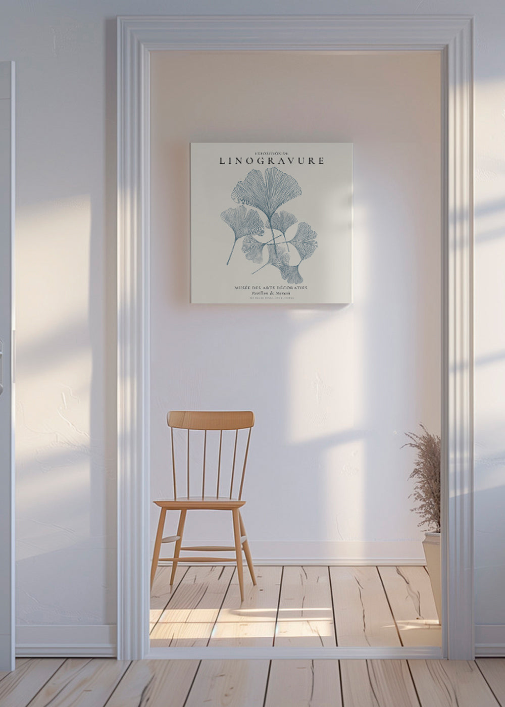 Scandinavian wall art Exposition de linogravure, Ginkgo leaves - SQUARE