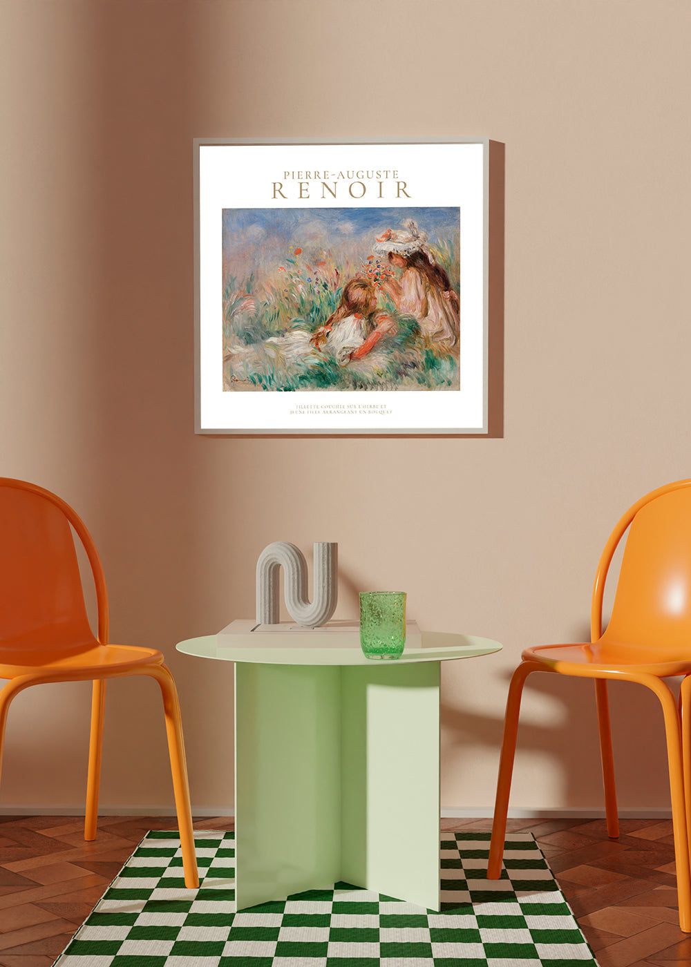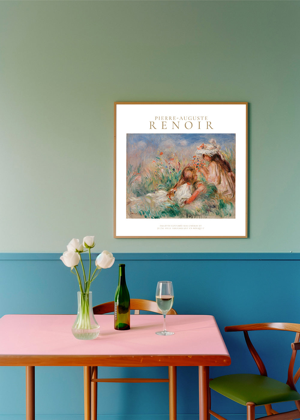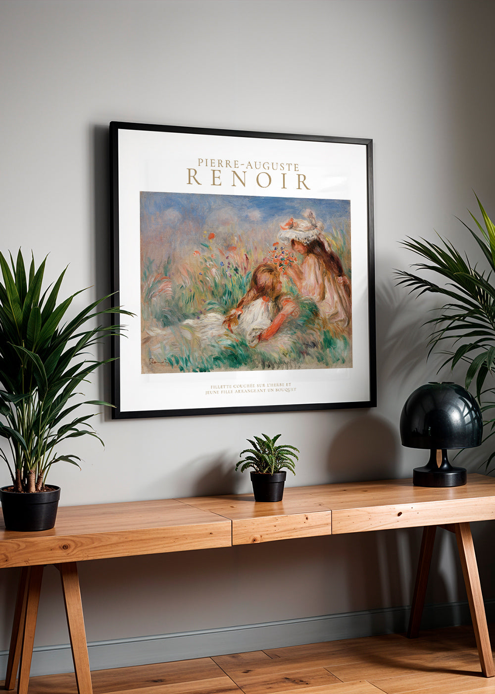 Scandinavian wall art Girls in the Grass Arranging a Bouquet by Pierre-Auguste Renoir - Square