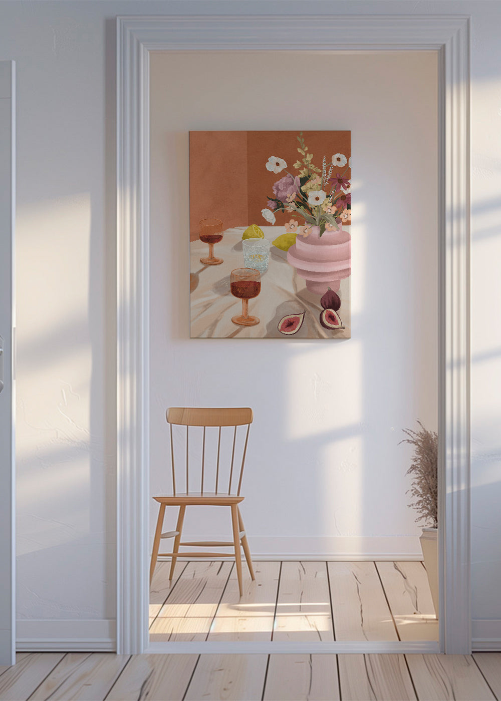 Canvas: printed on hand-stretched fabric for a more volumetric and artistic look, available with or without a frame.