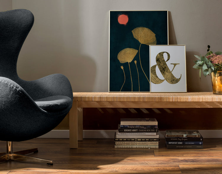 We work with solid wood and aluminum frames. All framed artworks are shipped already assembled and ready to hang. The front protection is high-clarity acrylic glass.