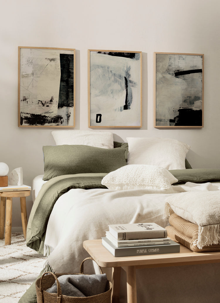 Each canvas is hand-stretched over a wooden frame. The depth is 3 cm for unframed canvases and 4 cm for framed canvases.