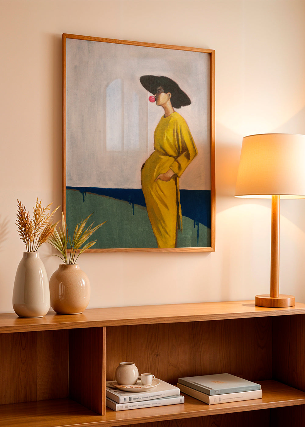 Beautiful poster in the style of our girls wall art, from the Alexander Grahovsky collection, with shades of green, and vertical layout. A perfect piece for spaces bursting with art and creativity. Our drawings are perfect for decorating empty or boring spaces. Refresh a whole room by just adding a few posters on the walls.