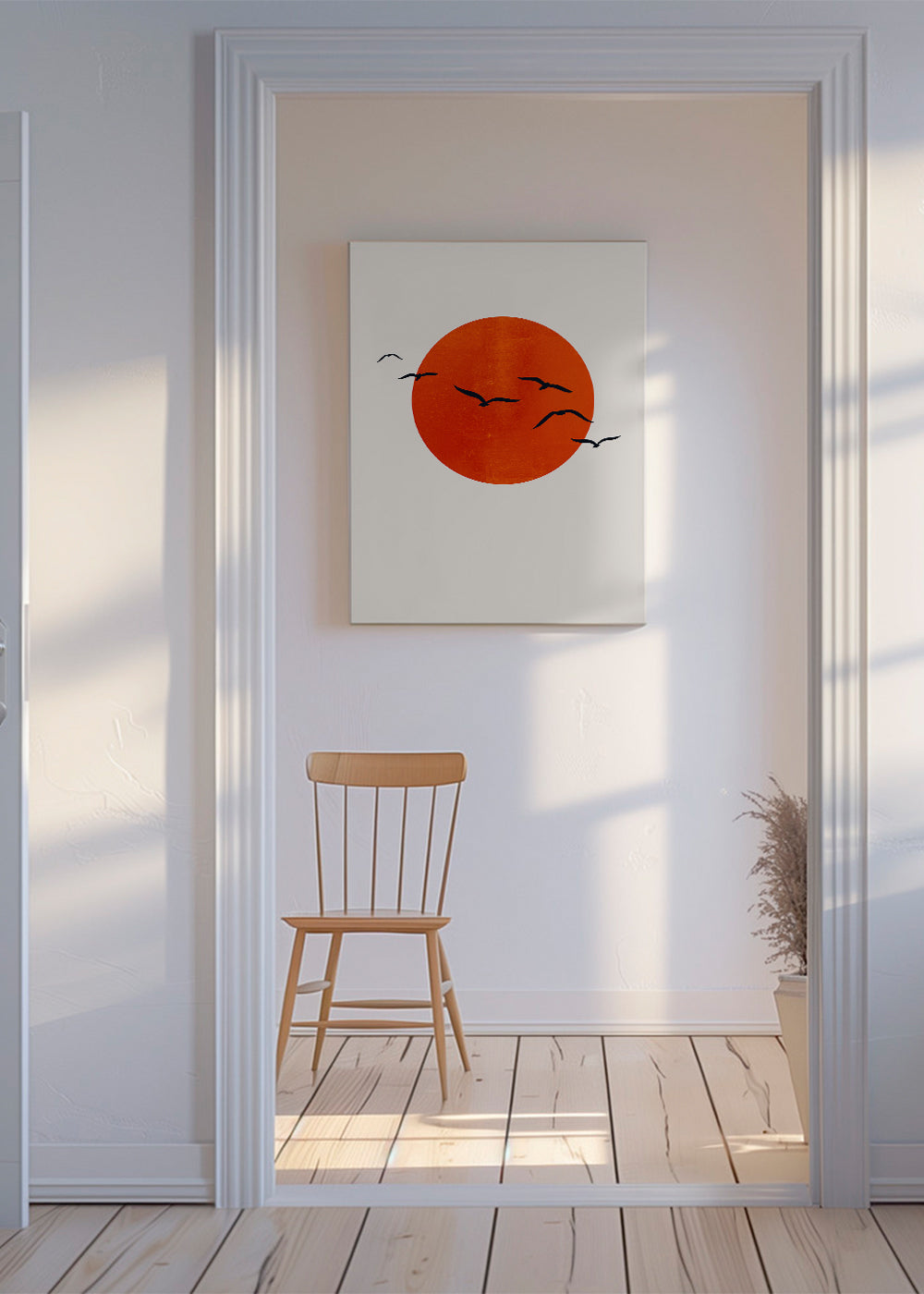 A print from the birds wall art collection, by creative artist Kubistika, with touches of red, and to hang in vertical position. Nature in all its splendour, landscape prints convey a sense of calm. Forget about boring walls.