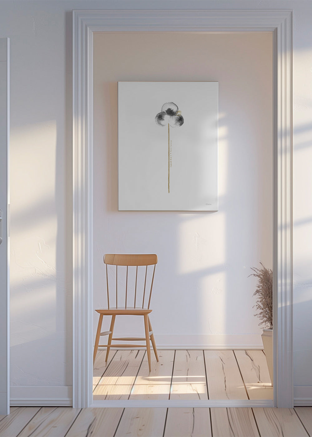 A poster from our repertoire of botanical prints and wall art, from the Fabiana Silveira collection, with tones of black, and facing vertically. The drawing is simple and clean, so you can pair it with other illustrations for an artistic composition. Choose the size that best fits your decor.