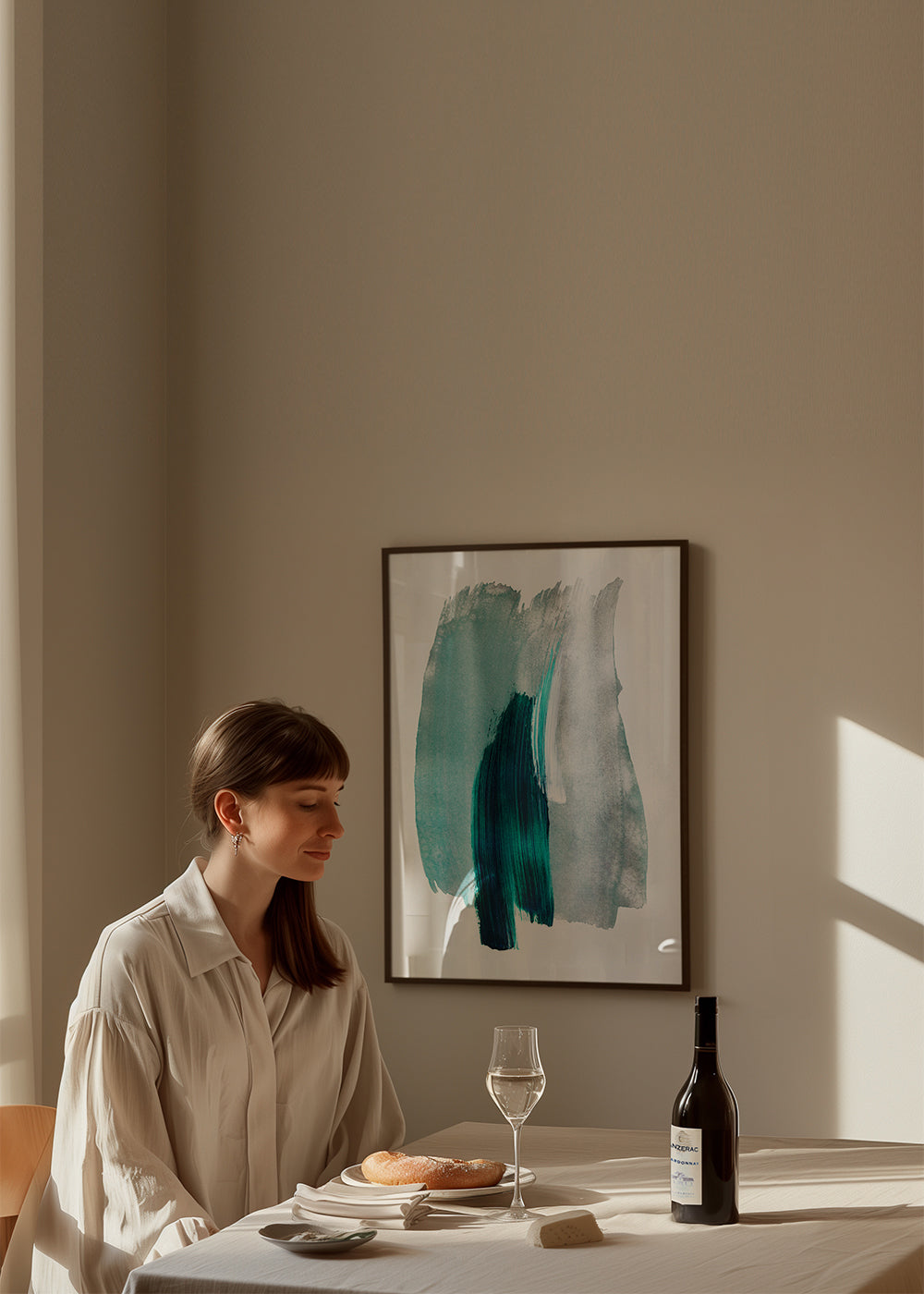 This print from our repertoire of brush posters, by Mareike Böhmer, with tones of green, and to hang in vertical position. This abstract artwork is perfect for almost any space in the home. Create spots full of art.