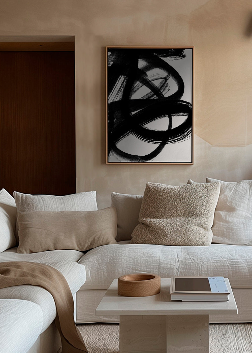 Beautiful design inspired by the collection of brush posters, an original by Mareike Böhmer, with tones of black, and with vertical layout. Geometric art is an elegant style to decorate the walls of your home with. Your home decor is in your hands.