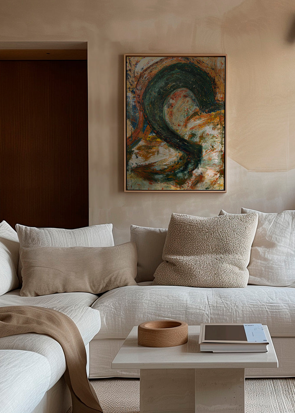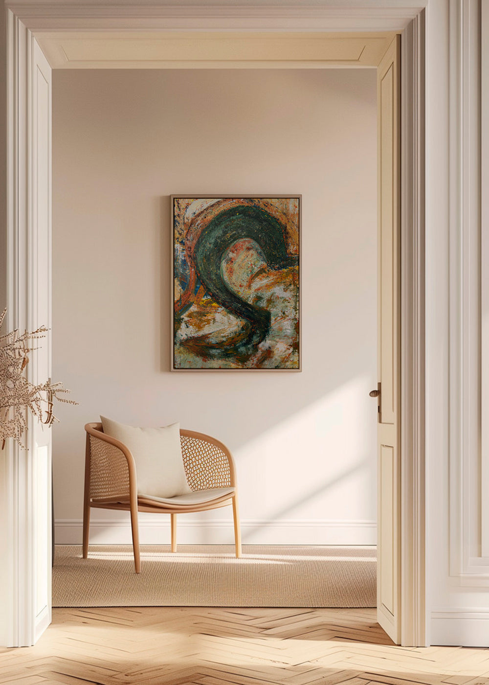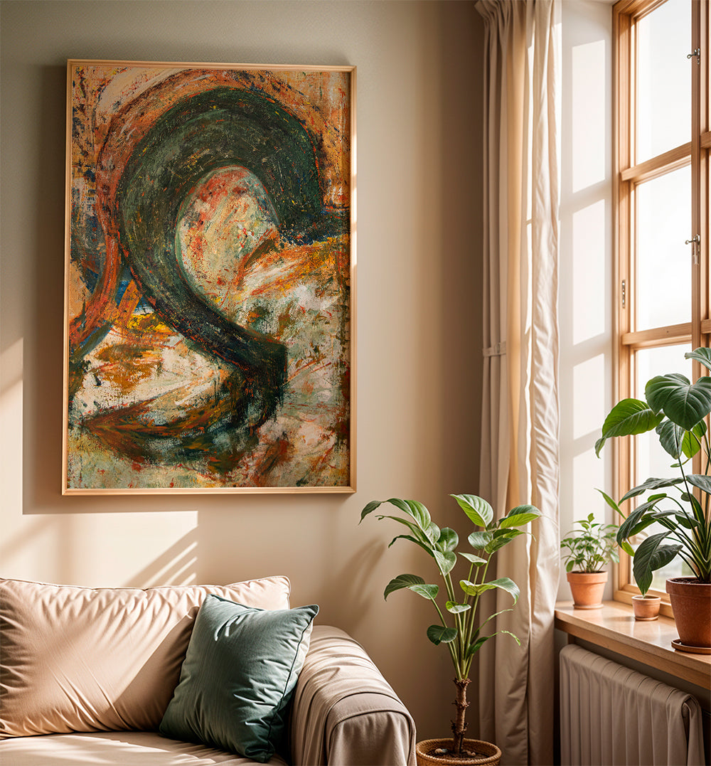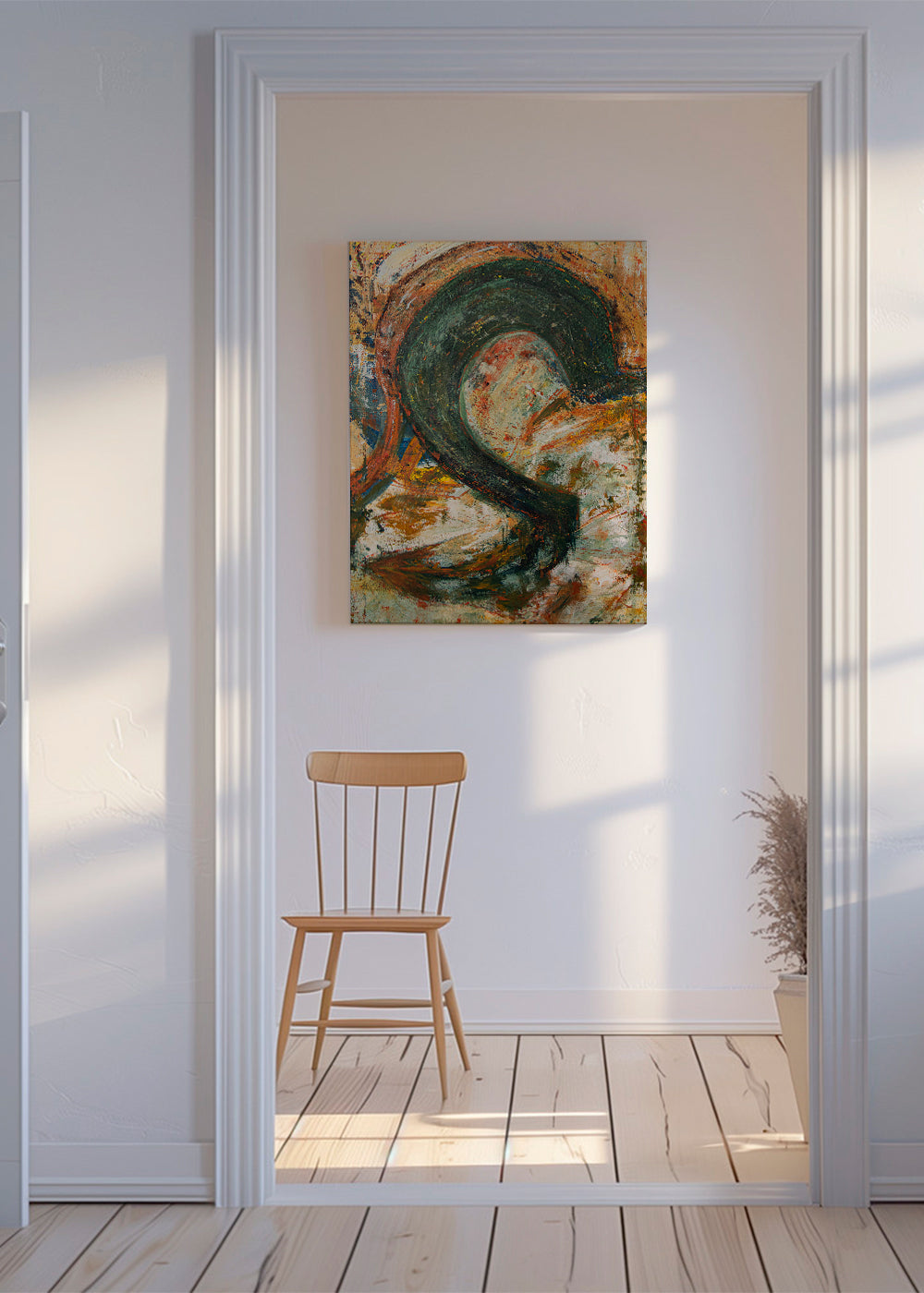 Beautiful print from the abstract wall art and prints series, by the artist Elena Camacho Art, with multicolor pigments, and with vertical layout. Abstract art modernises any space and gives your decor a chic look. This is the print your wall has been looking for.