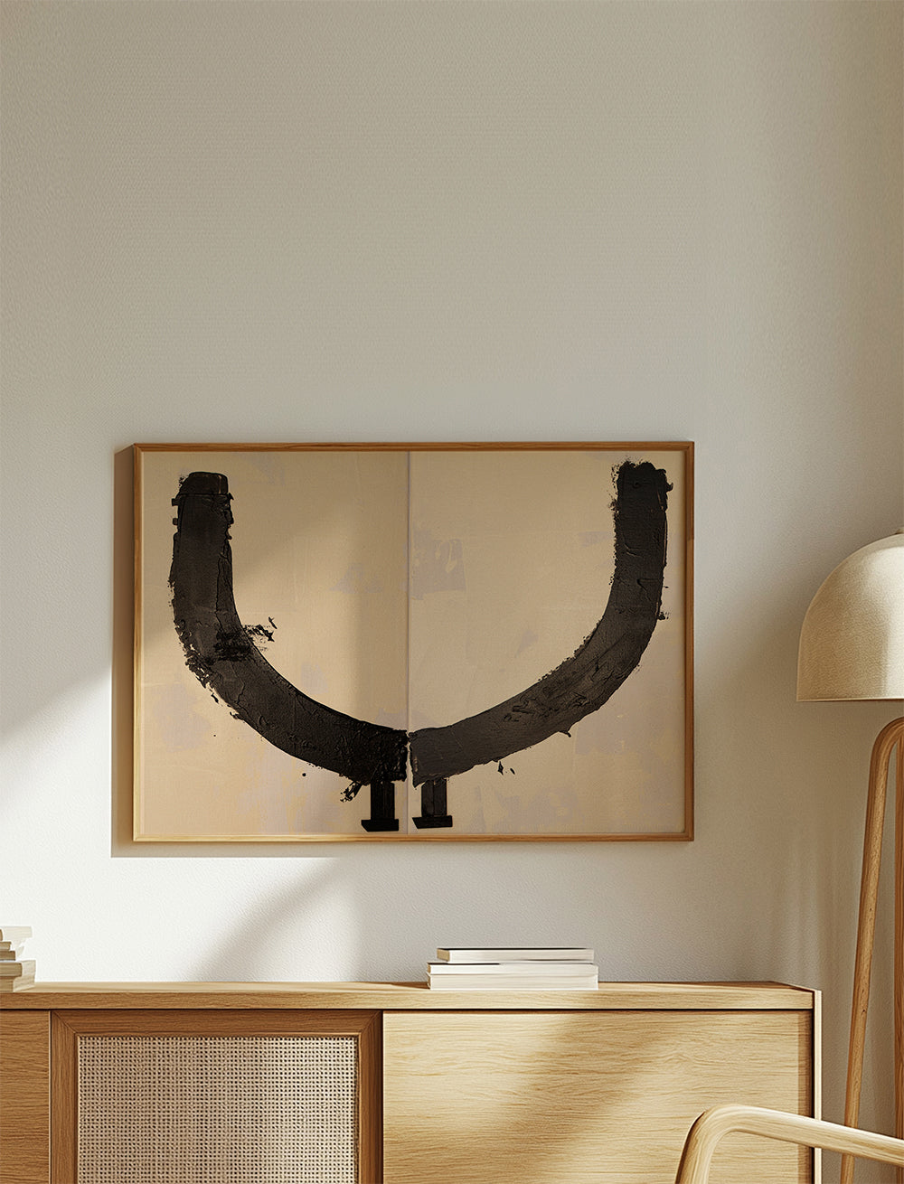 A piece from the abstract wall art and prints series, from the mind of Elena Camacho Art, with black, and to hang in horizontal position. If you want to add some style and originality to your decor, this abstract design will help give a cutting-edge touch to the walls of your home. Fill your walls with art.