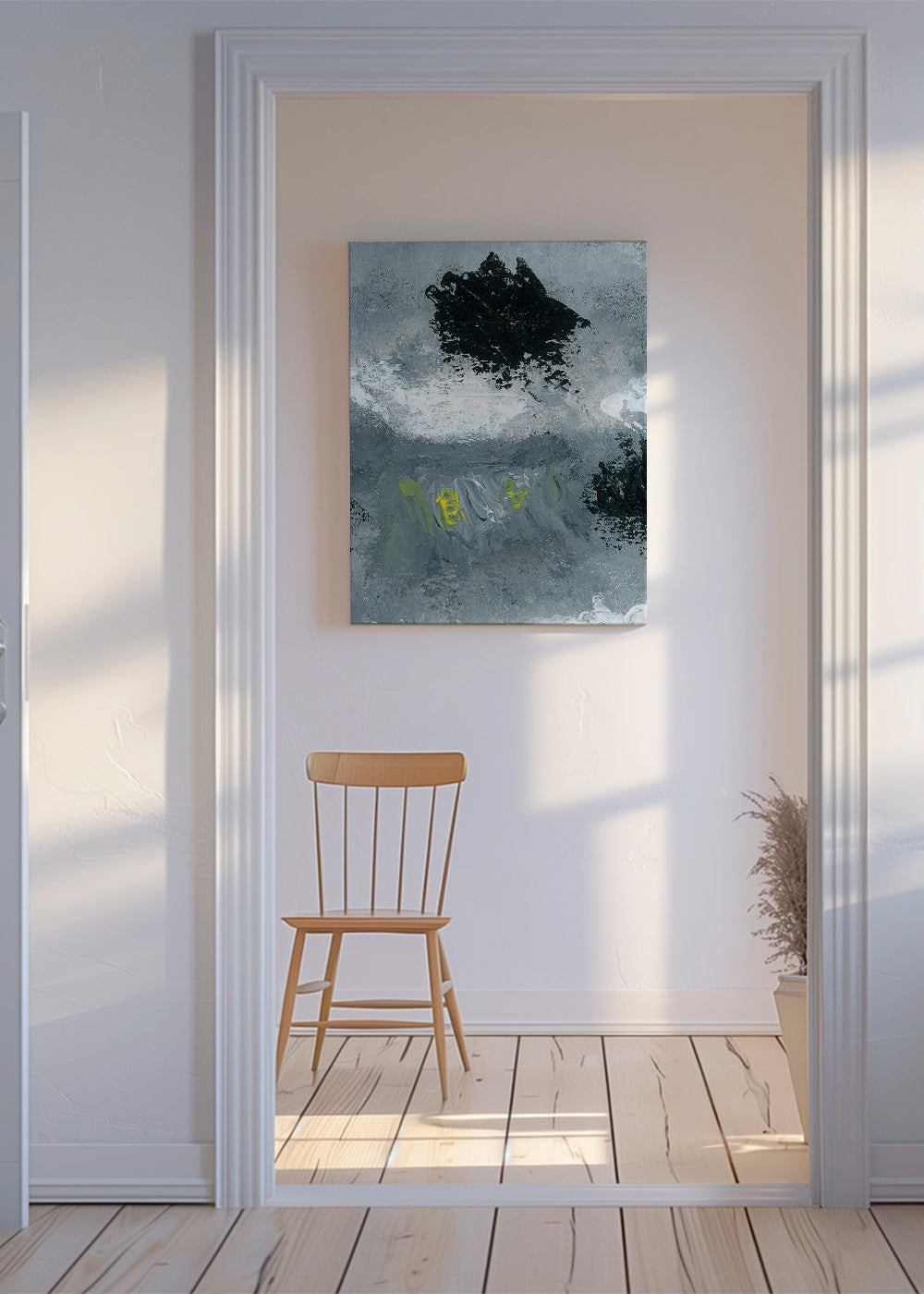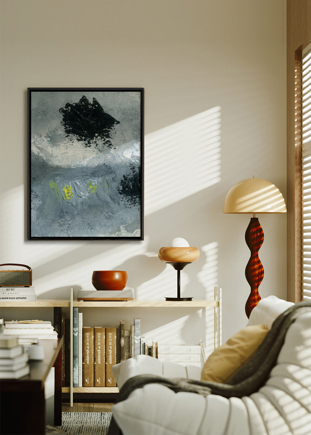 This print from the abstract wall art and prints category, an original by Elena Camacho Art, with grey, and perfect to hang vertically. This design is perfect for decorating contemporary spaces. Combine it with other abstract pieces for cutting-edge decoration. A modern touch for your home.