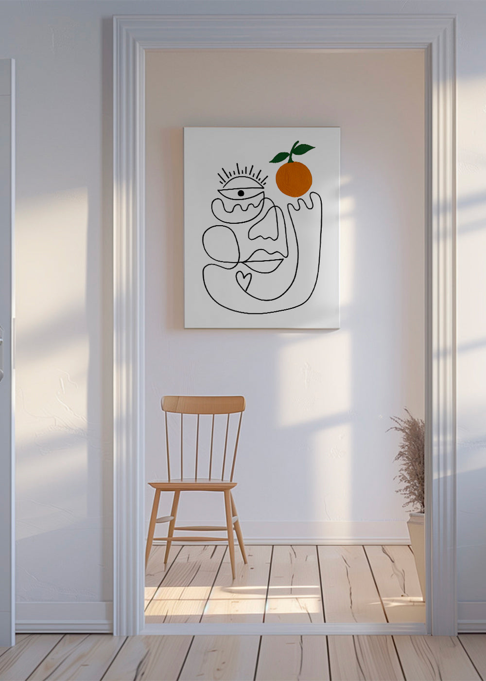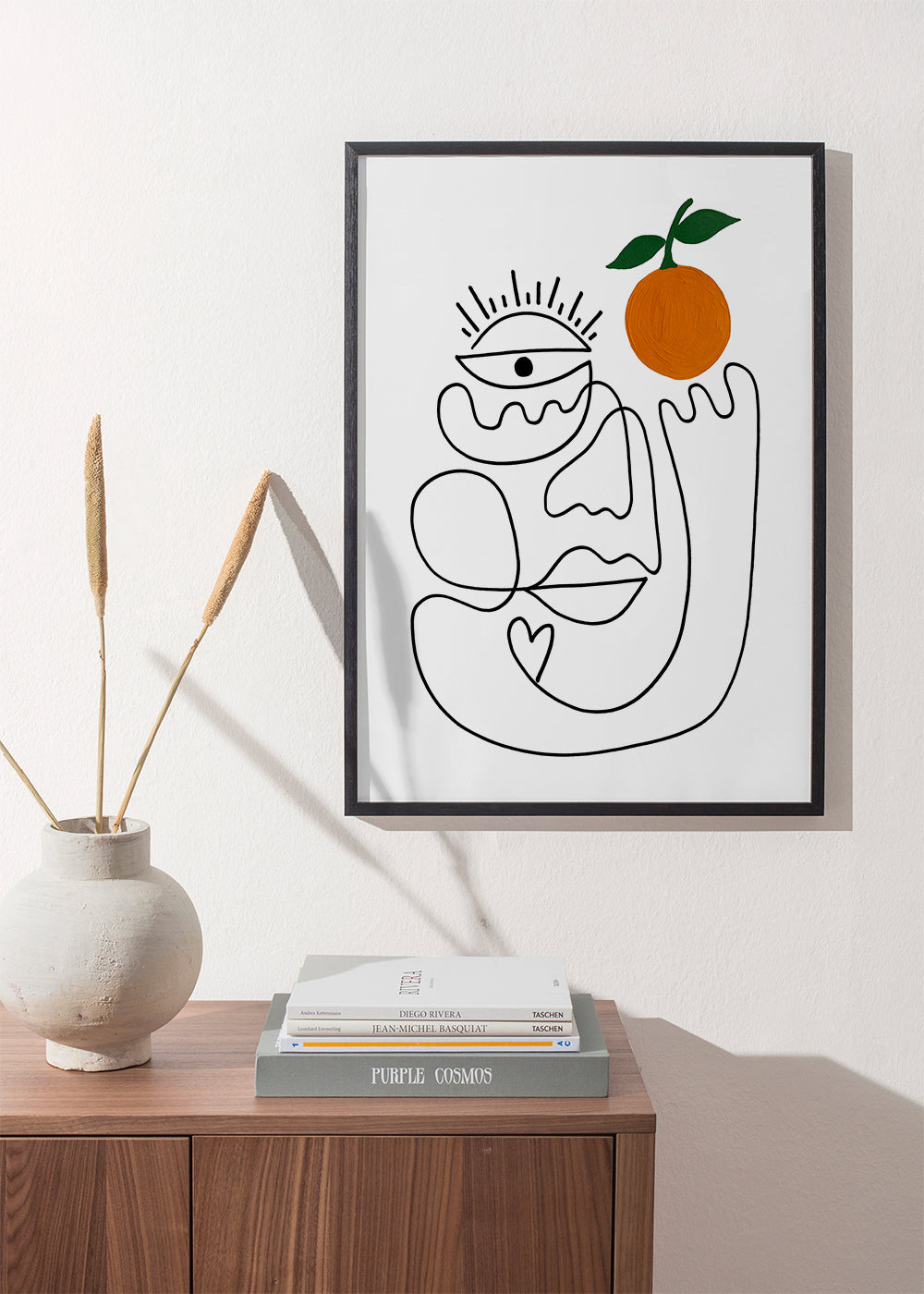 A design from our portrait faces posters series, created by Shatha Dafai, with orange, and vertical layout. Abstract art modernises any space and gives your decor a chic look. Let your walls tell a story.