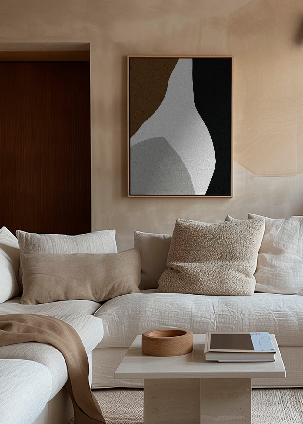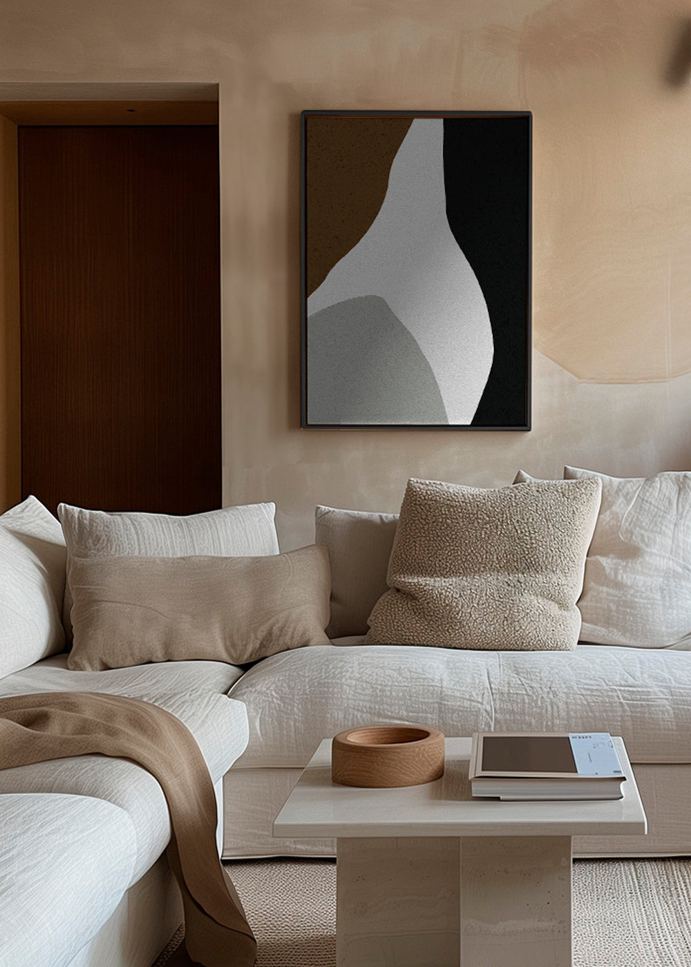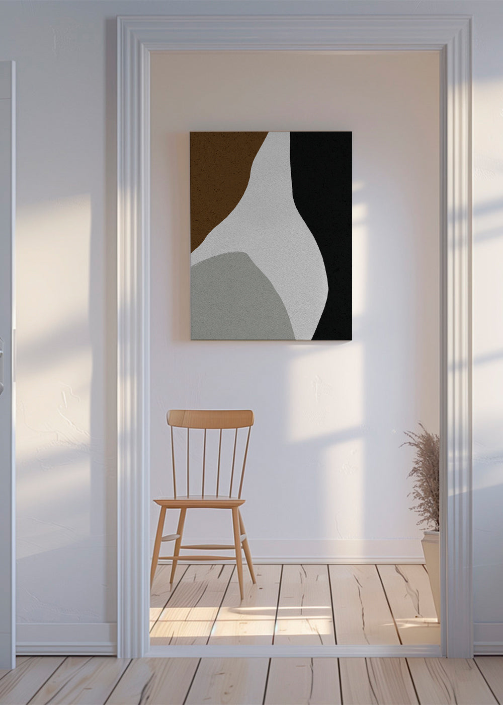 A piece from our geometric wall art and prints category, created by U + Me Studio, in grey shades, and vertical layout. The abstract, geometric shapes help create a casual, creative setting. A piece that will be a plus for any room.
