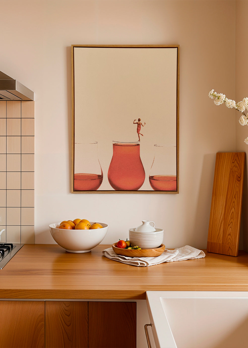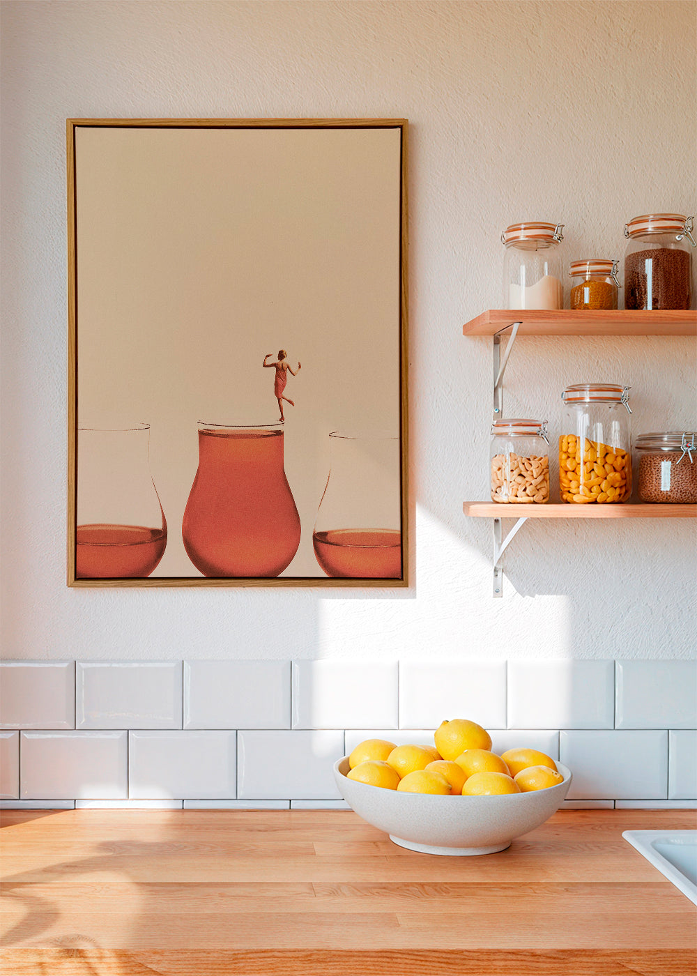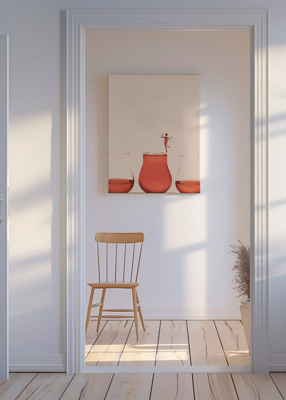 Beautiful piece from the vintage wall art category, made by Maarten Leon, with red, and to hang in vertical position. A retro poster you can pair with other vintage-style prints for an original touch in the home. It's always a good time to freshen up your home.