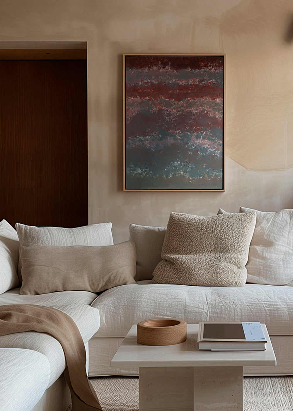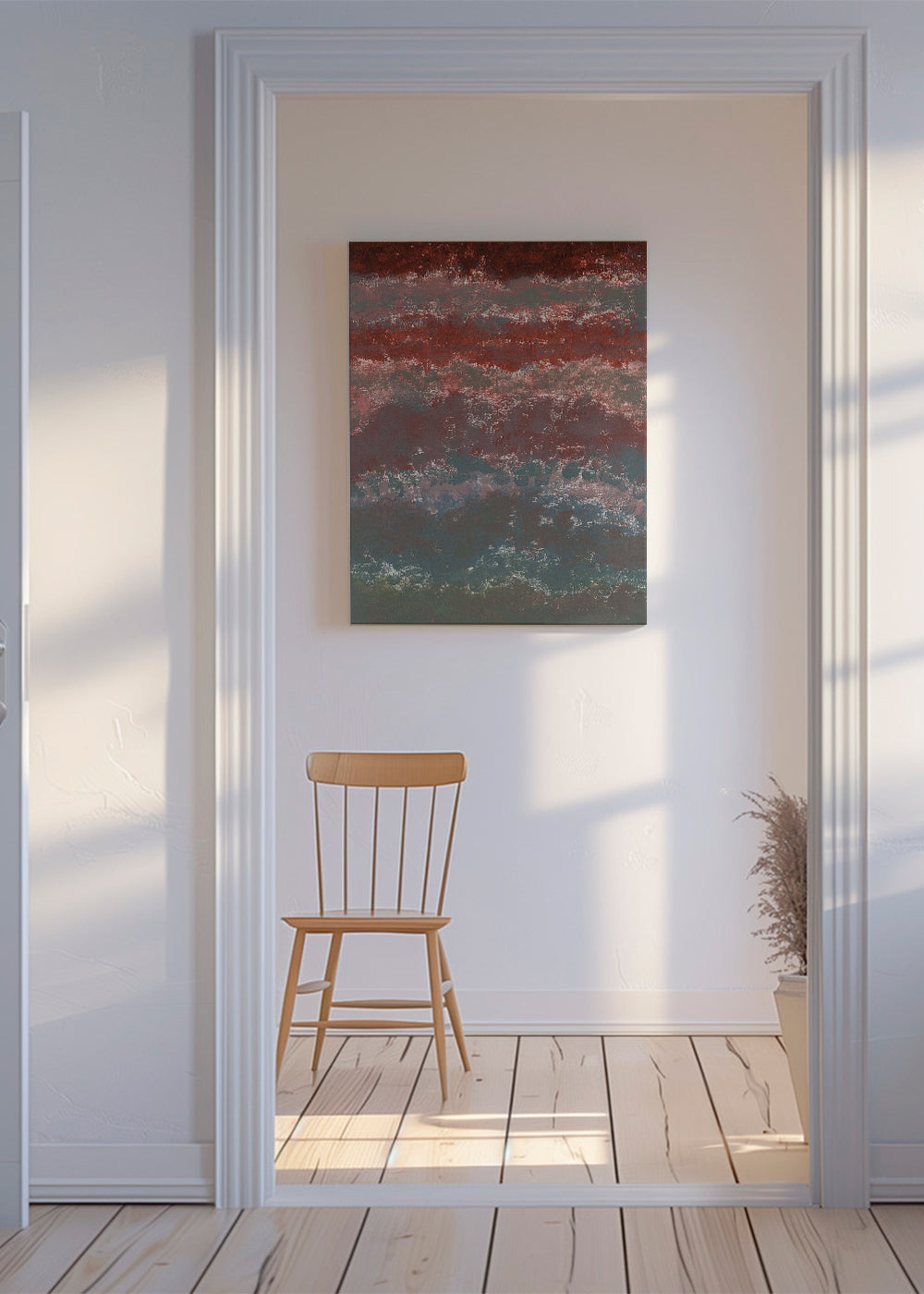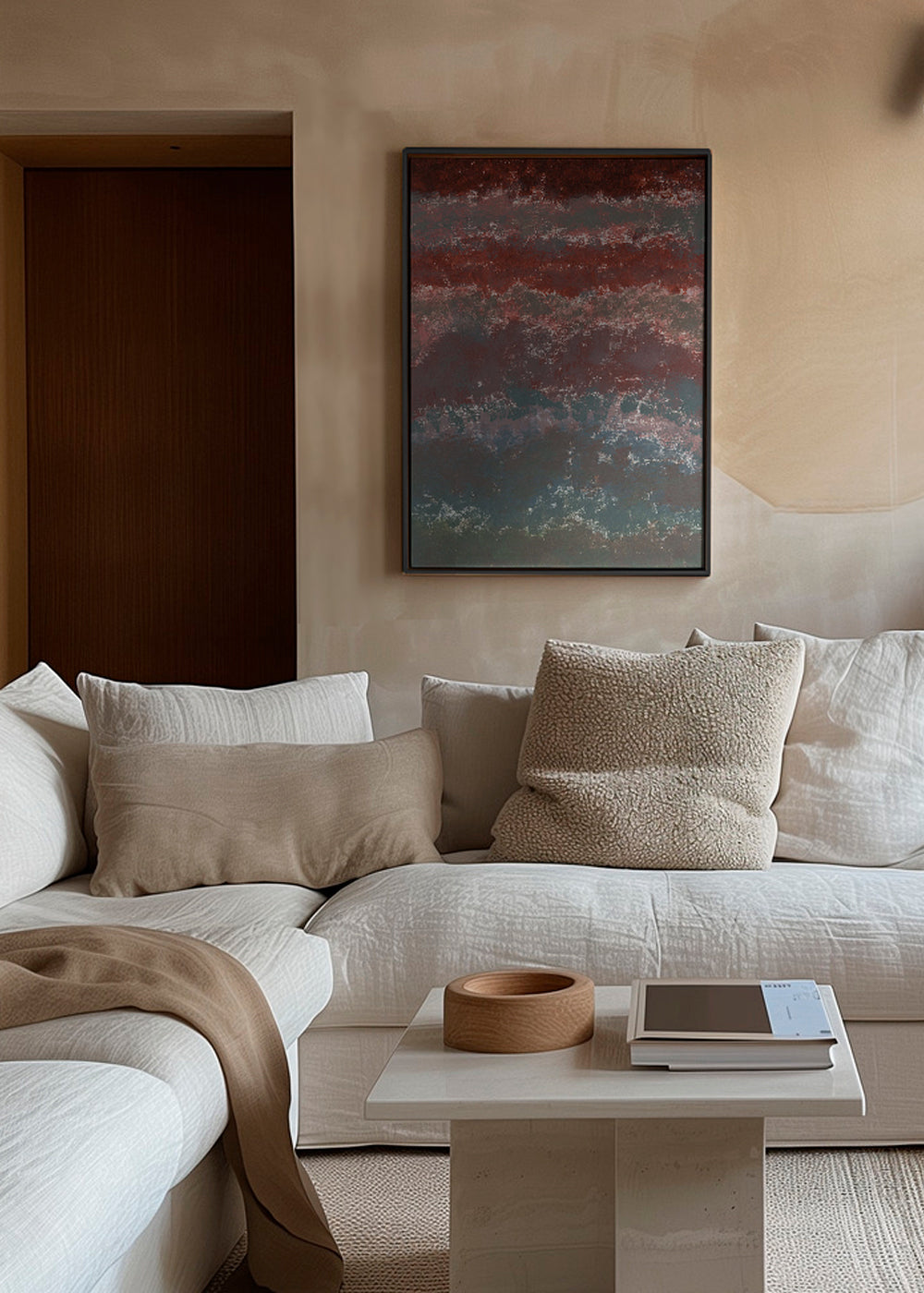 A piece from the abstract wall art and prints category, created by Elena Camacho Art, in red shades, and perfect to hang vertically. Decorating with abstract prints is a great option if you want a unique home. An empty wall is a sad wall; but with a few prints, we'll make it smile.