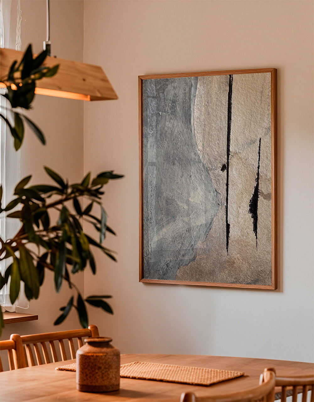 This piece from our repertoire of abstract wall art and prints, created by Elena Camacho Art, with tones of grey, and to hang in vertical position. It is an abstract artwork that will give your spaces a modern touch. The final touch for your home decor.