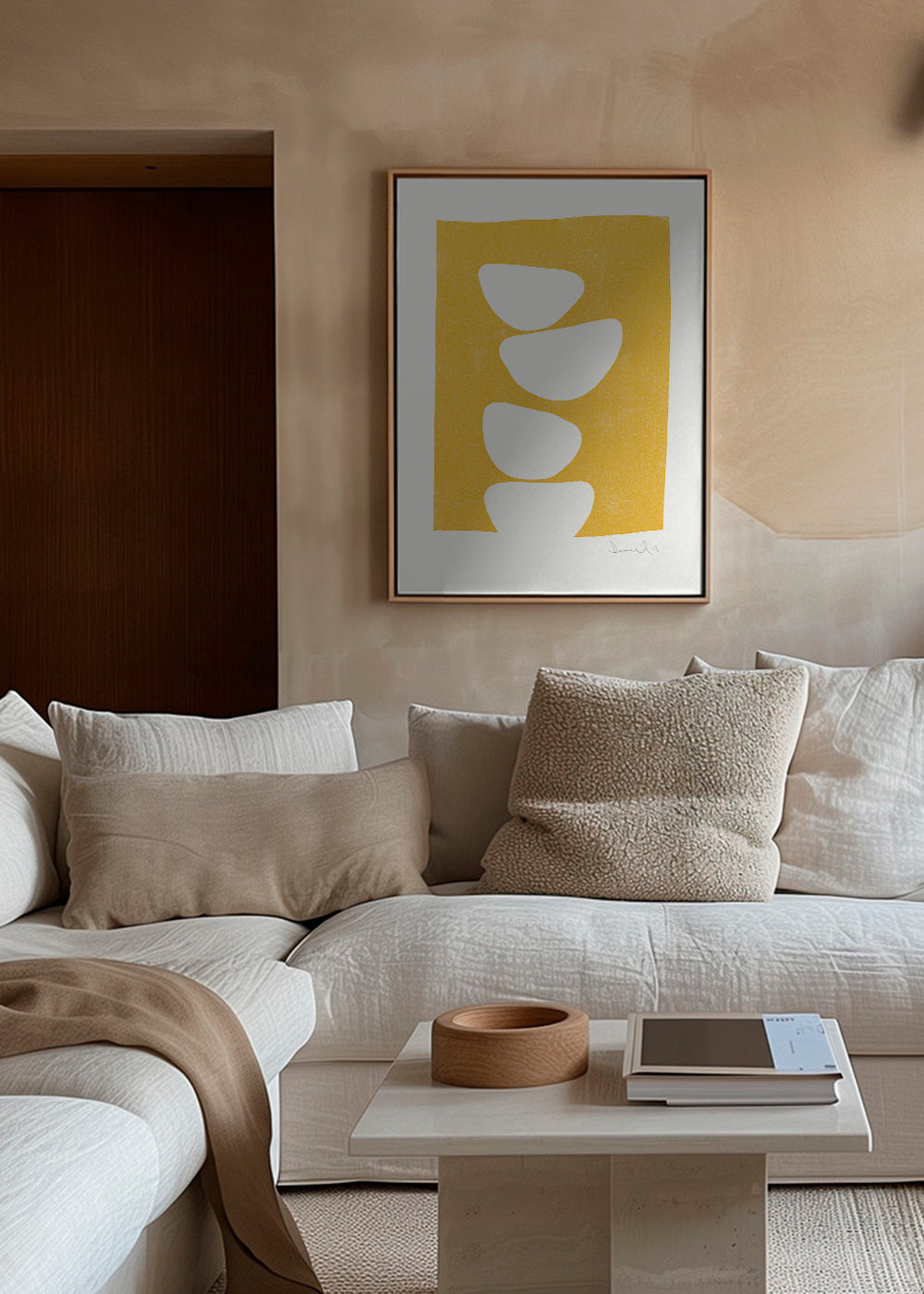 This print inspired by the collection of abstract wall art and prints, from the mind of 1x, with tones of yellow, and perfect to hang vertically. This abstract artwork is perfect for almost any space in the home. This is the print your wall has been looking for.