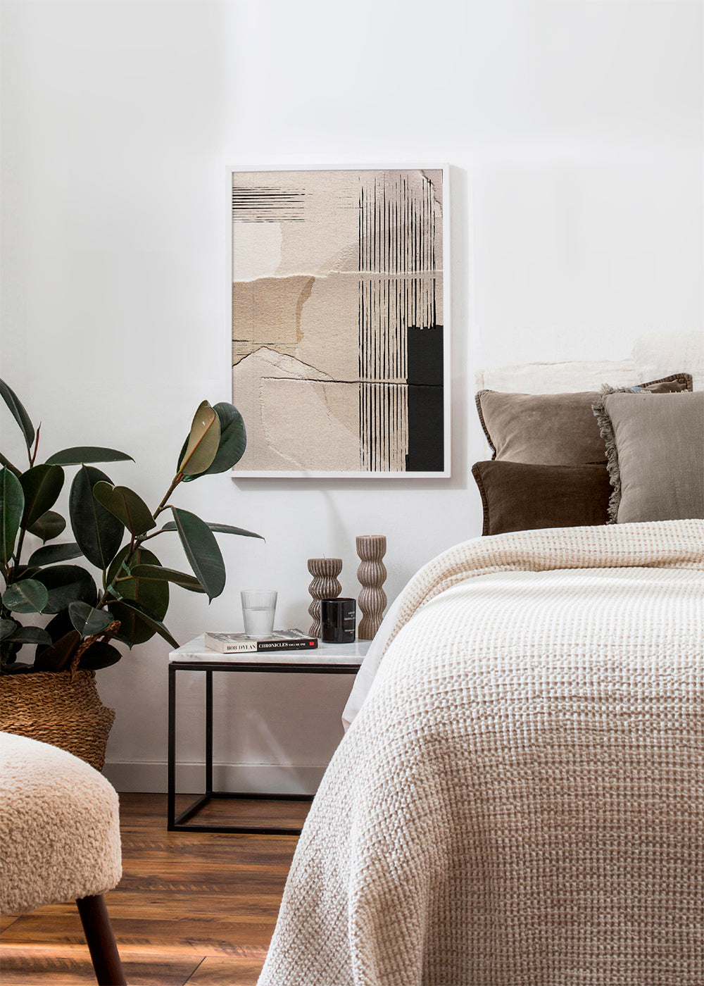 Each canvas is hand-stretched over a wooden frame. The depth is 3 cm for unframed canvases and 4 cm for framed canvases.