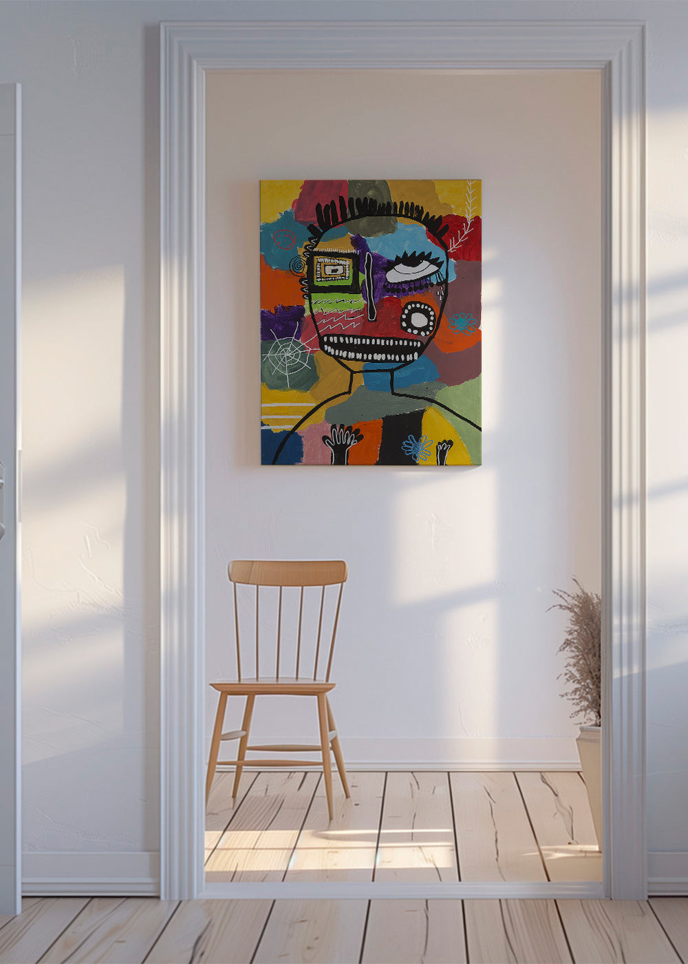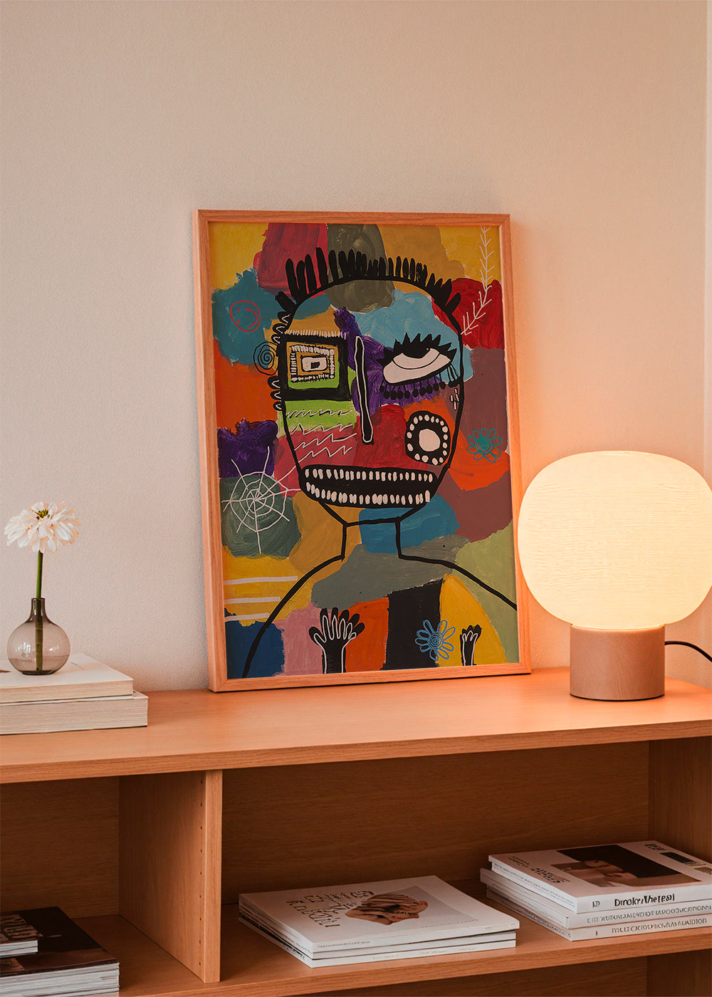 A print from the portrait faces posters series, by Carmen Álvarez, in tones of multicolor, and to hang in vertical position. Drawings are one of the clearest forms of art and this design will leave no one indifferent. Bring the walls of your home to life.