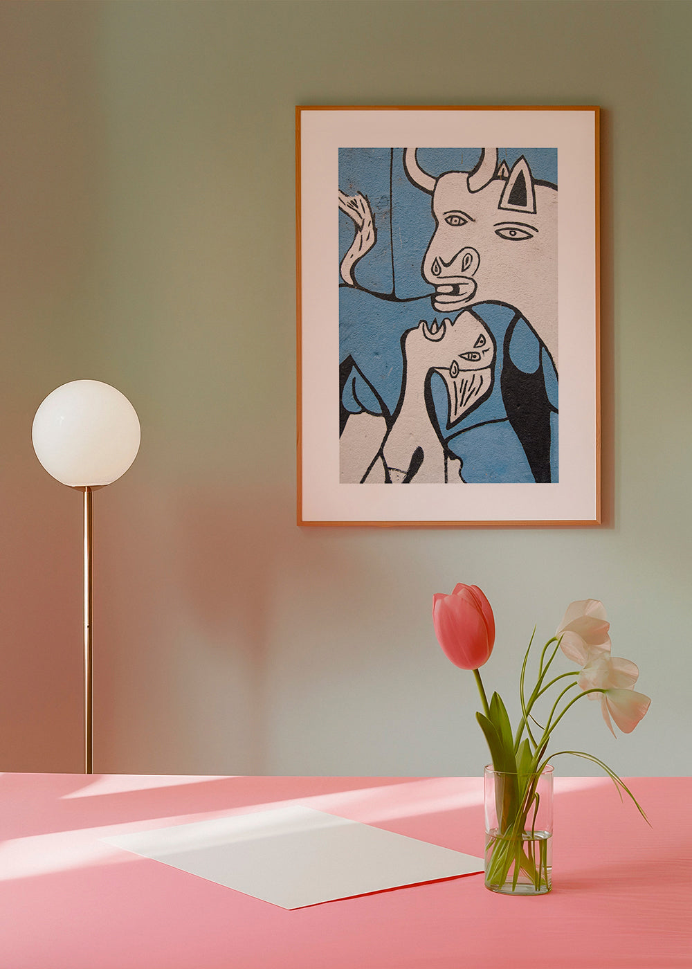 This print from the graffiti wall art collection, created by Ferran Feixas, with shades of blue, and perfect to hang vertically. This piece is perfect for animal-lovers. Pair it with other animal pieces for a marvellous composition. A new look on your walls can bring a breath of fresh air to all your decor.
