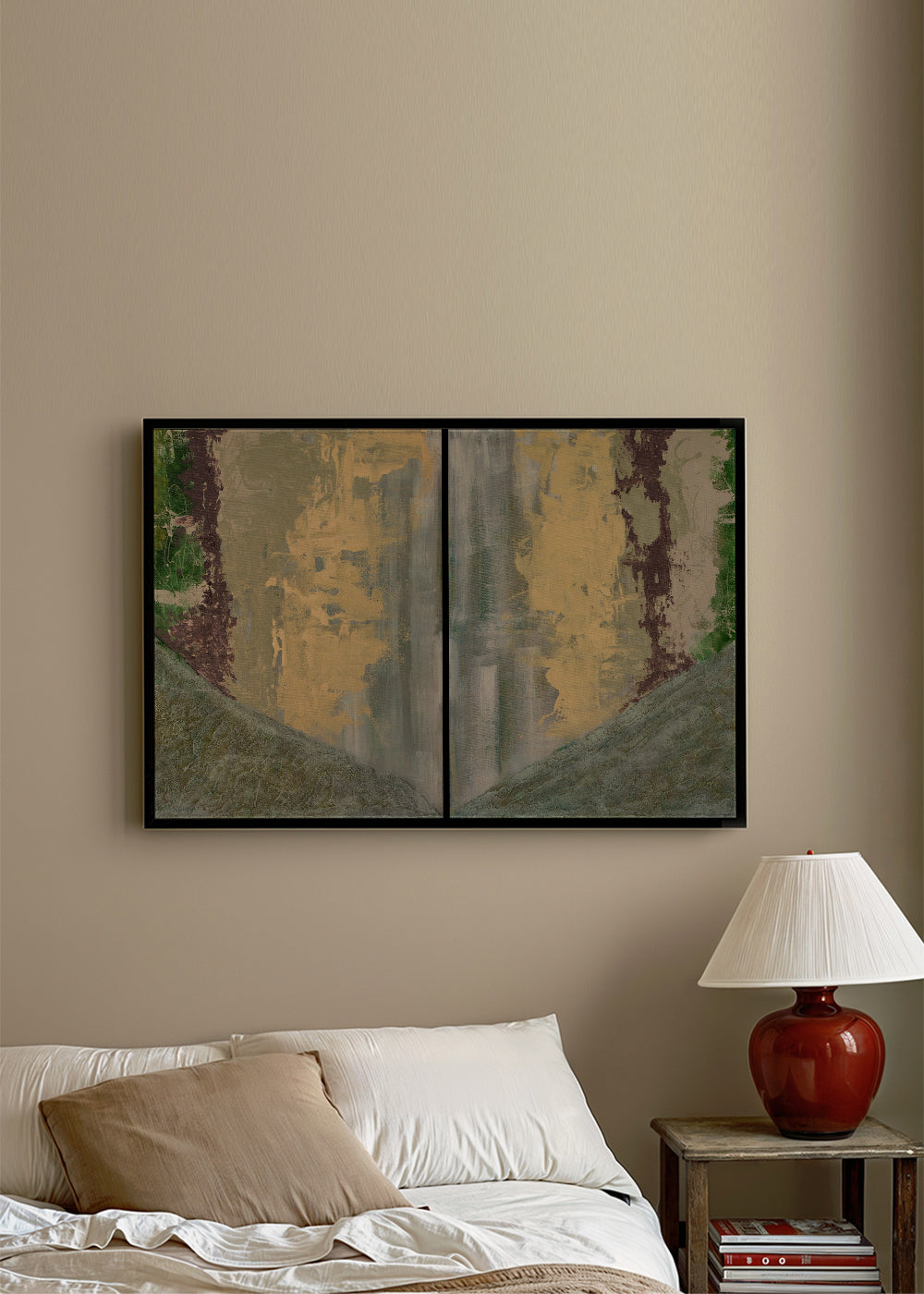 Each canvas is hand-stretched over a wooden frame. The depth is 3 cm for unframed canvases and 4 cm for framed canvases.