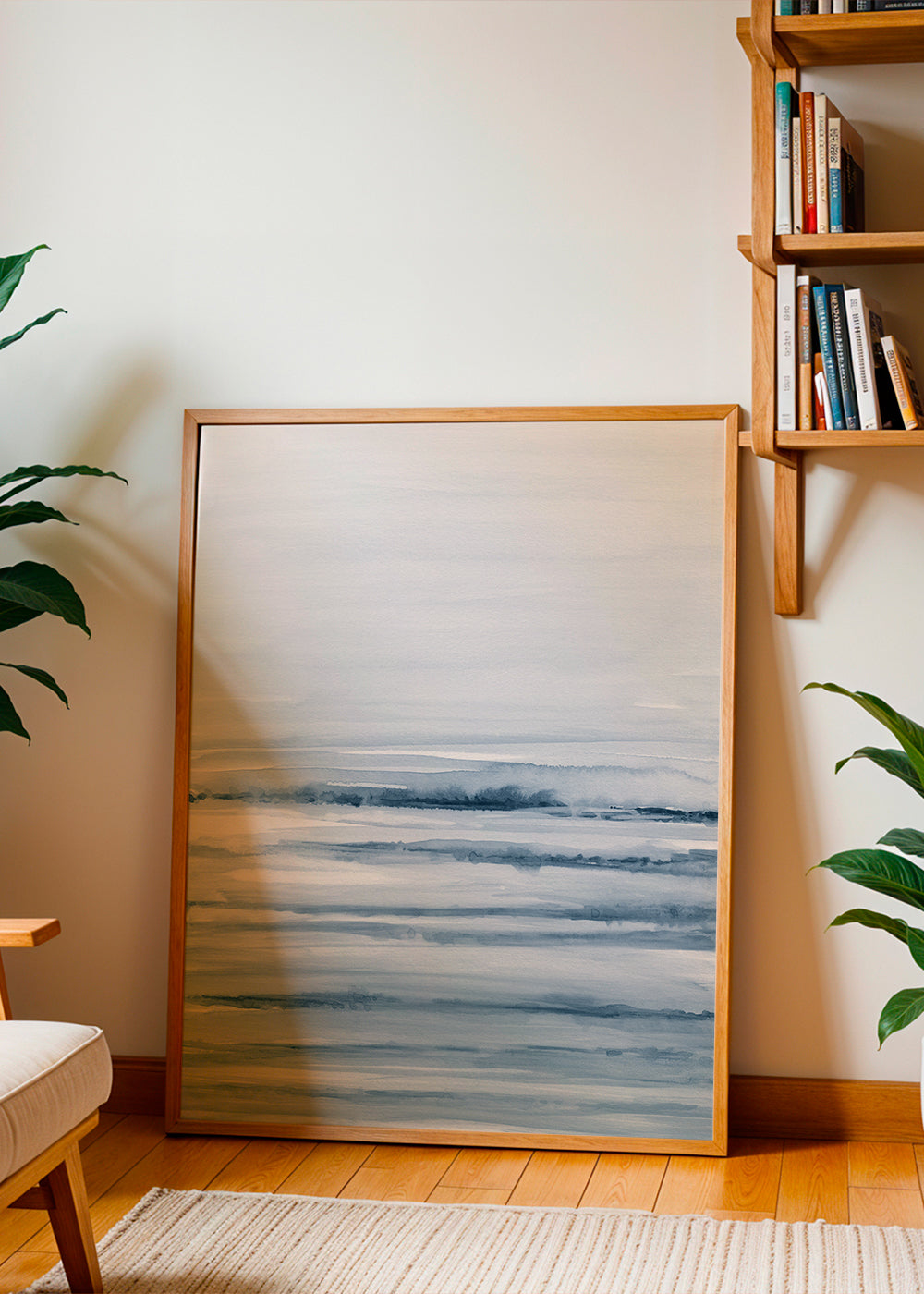 Abstract wall art print Watercolor landscape N 45 Indigo Blue