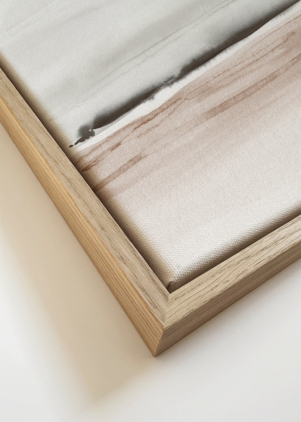 The wooden frames up to 20x28 in (included) have a width of 0.6 in and a depth of 1.2 in, while in the larger ones the width is 0.8 in and a depth of 1.2 in.