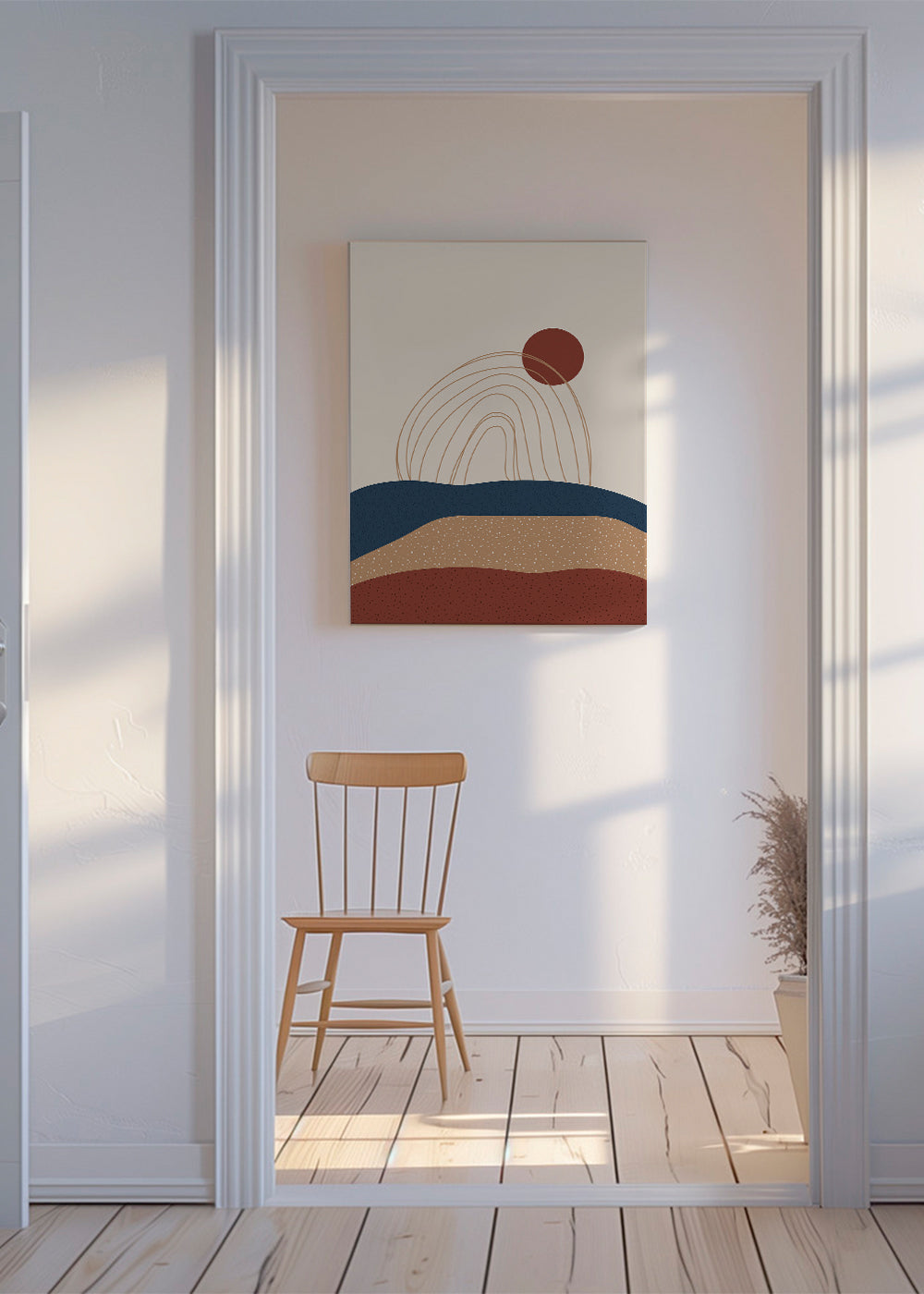 A design from our repertoire of sunrise and sunset wall art, by the artist Essentially Nomadic, with red, and to hang in vertical position. The tranquillity and freedom of landscape prints is one of a kind. Bring the walls of your home to life.
