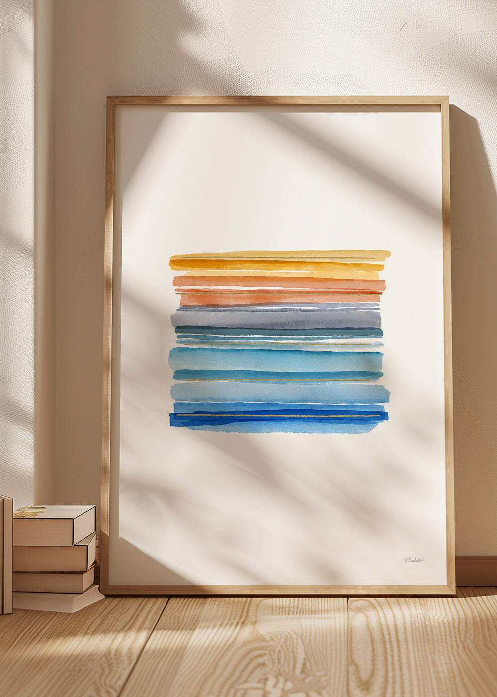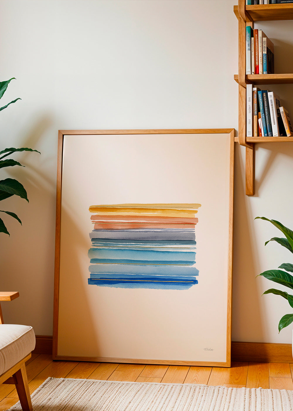This poster from the geometric wall art and prints collection, created by Fabiana Silveira, in tones of blue, and in vertical position. This piece with abstract shapes is perfect for pairing with other abstract art and geometric prints. A home expresses itself through its walls.