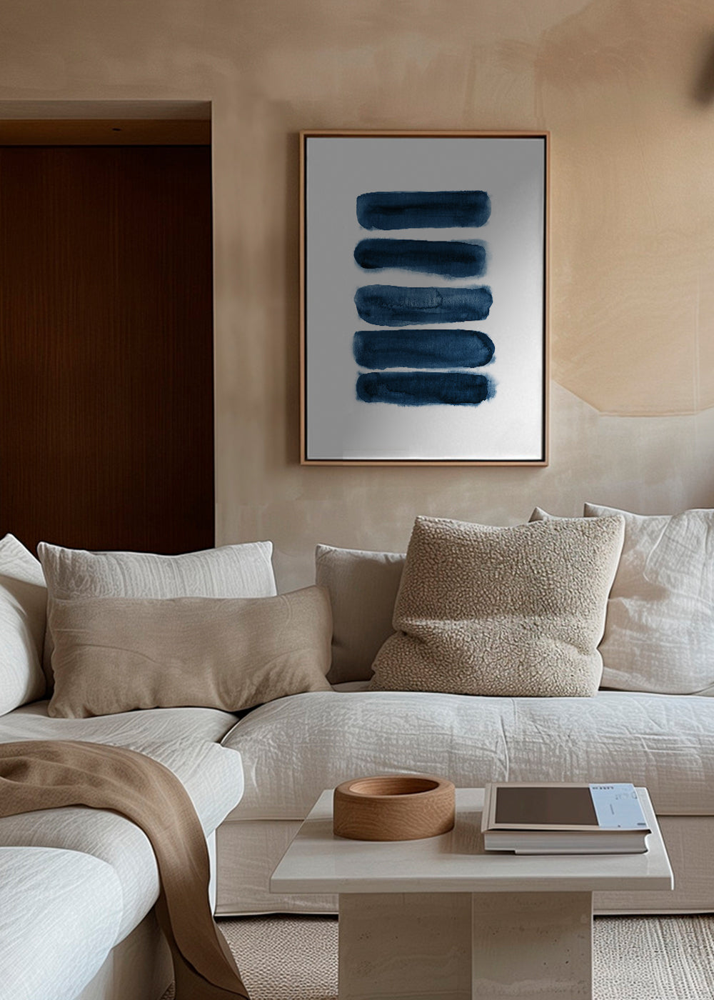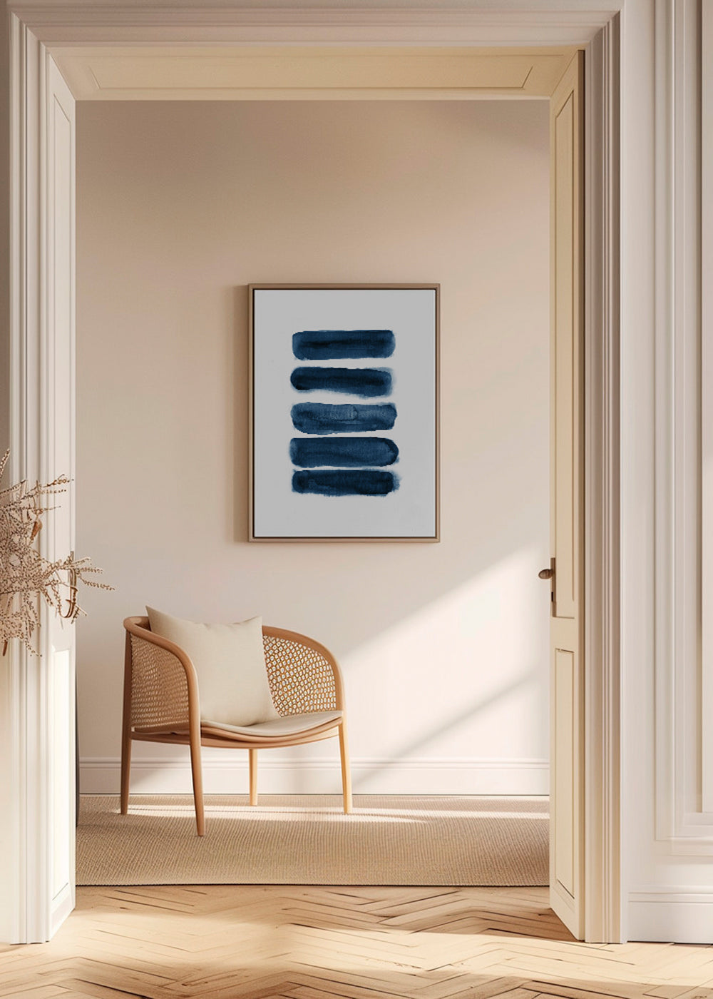 Each canvas is hand-stretched over a wooden frame. The depth is 3 cm for unframed canvases and 4 cm for framed canvases.