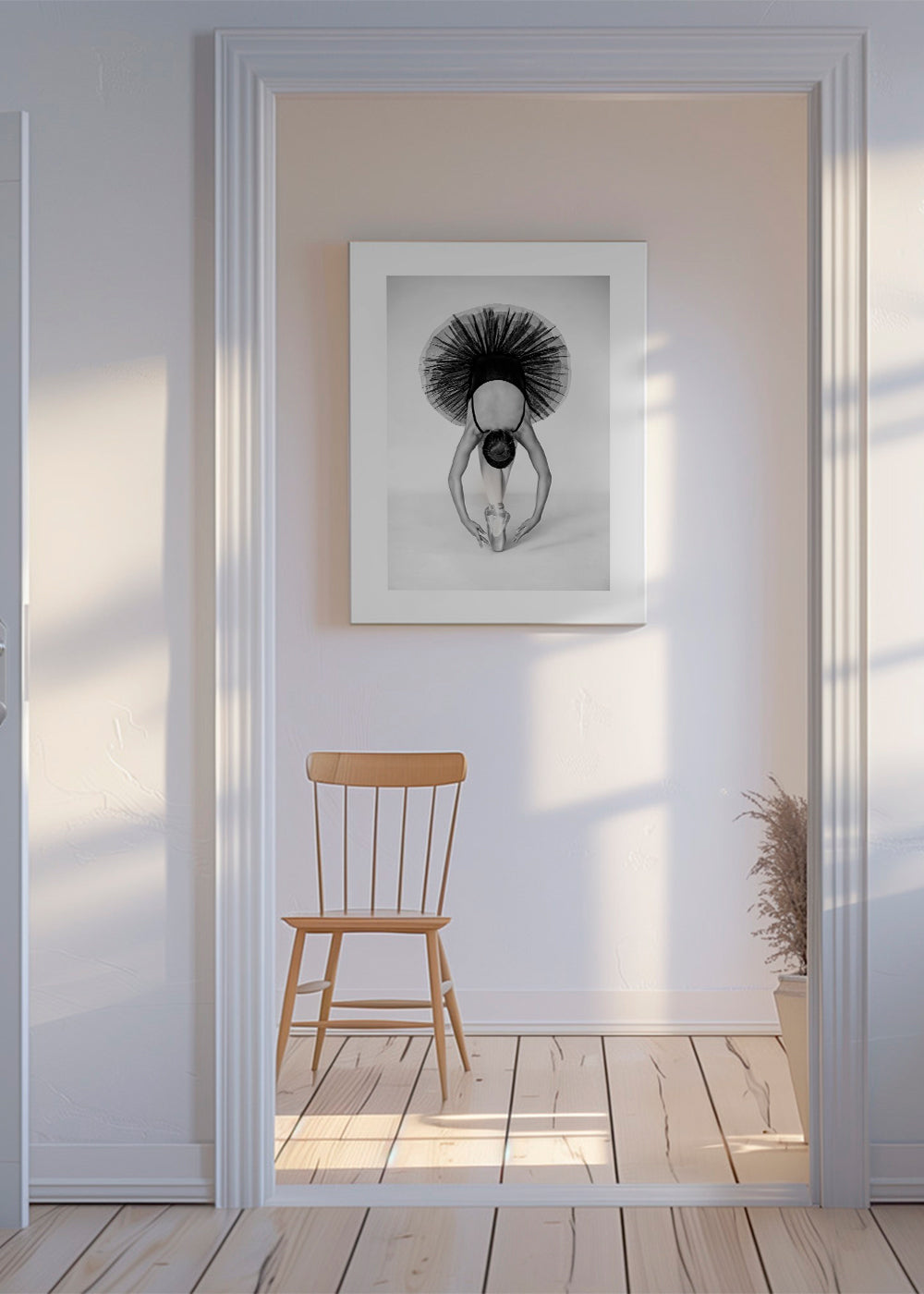 A print from the girls wall art collection, with black and white tones, and with vertical layout. This photo will not go unnoticed in any decor. Fill your walls with art. This piece includes a white strip framing the design to boost its style.