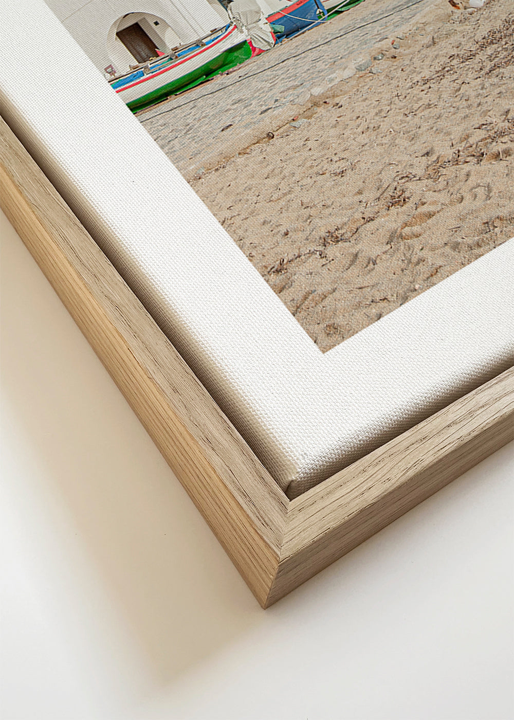 If you select the passepartout option, we will add the white matt board to the frame, and we will reduce the design of the work. For example, if you select a print size 20x28 in, with an oak colored frame and passepartout, we will reduce the design of the print to the previous size (16x20 in). In this way, it will adapt perfectly to the inside window of the passepartout.