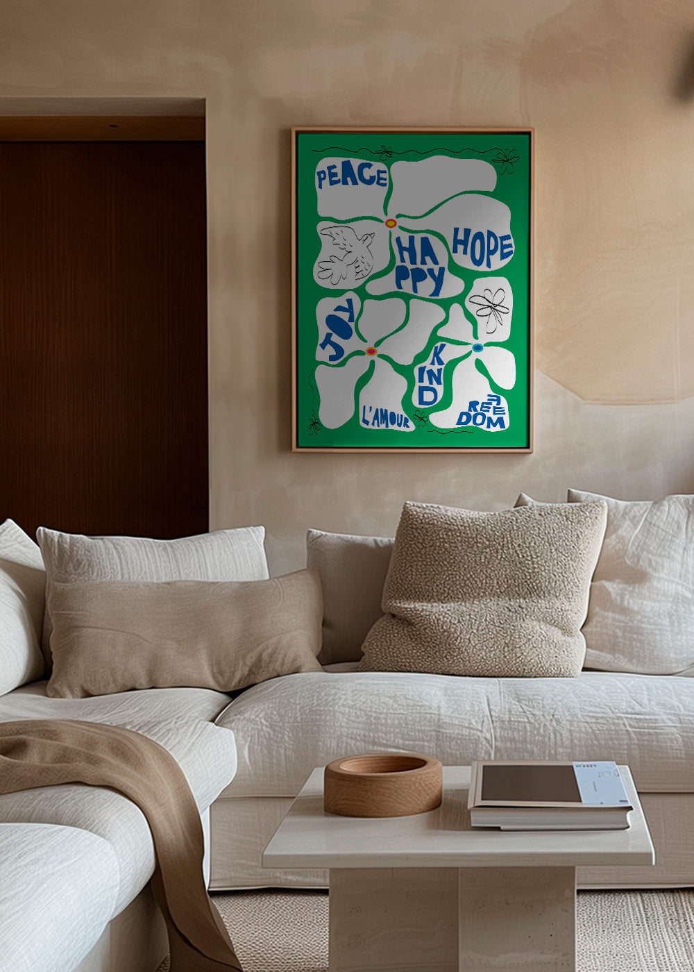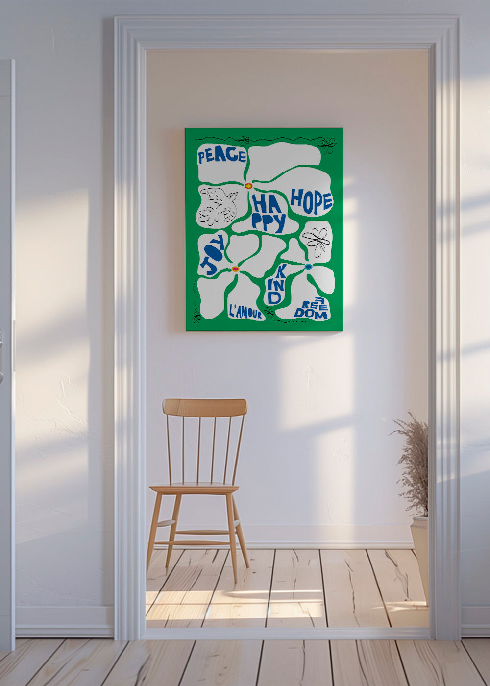 Each canvas is hand-stretched over a wooden frame. The depth is 3 cm for unframed canvases and 4 cm for framed canvases.