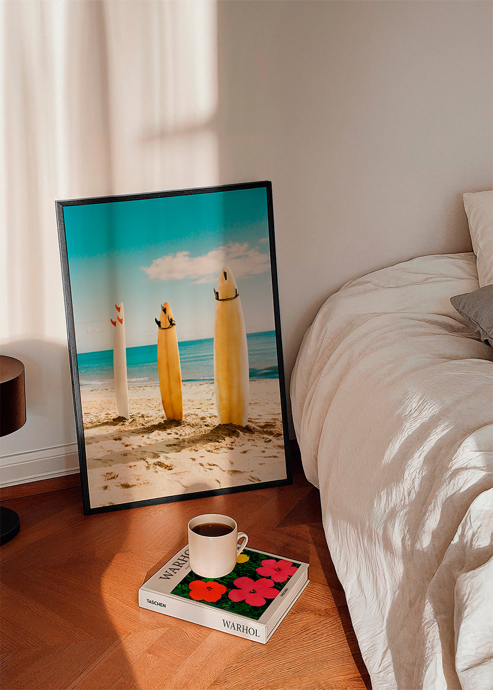 This piece from our surf posters and wall art collection, from the Gal Design collection, with yellow tones, and in vertical position. Nature in all its splendour, landscape prints convey a sense of calm. Create your favourite spot.