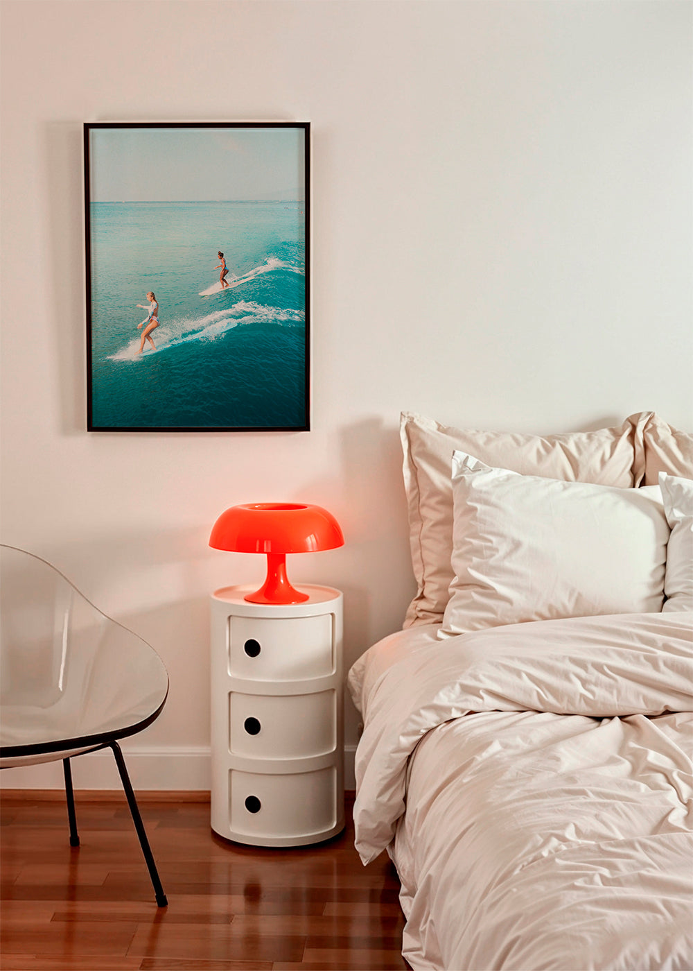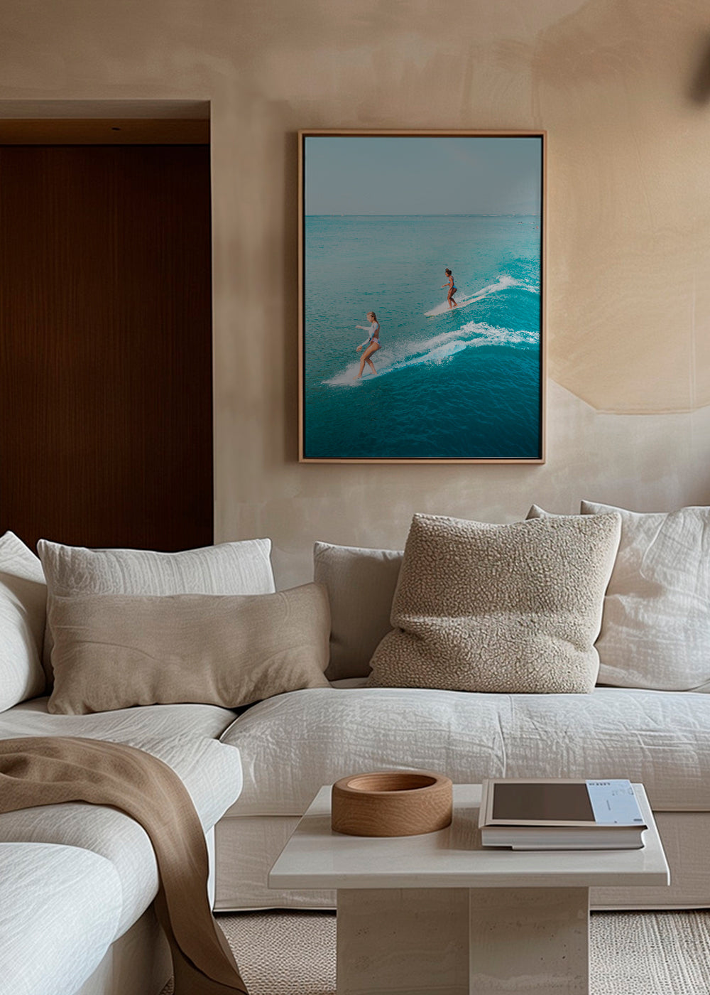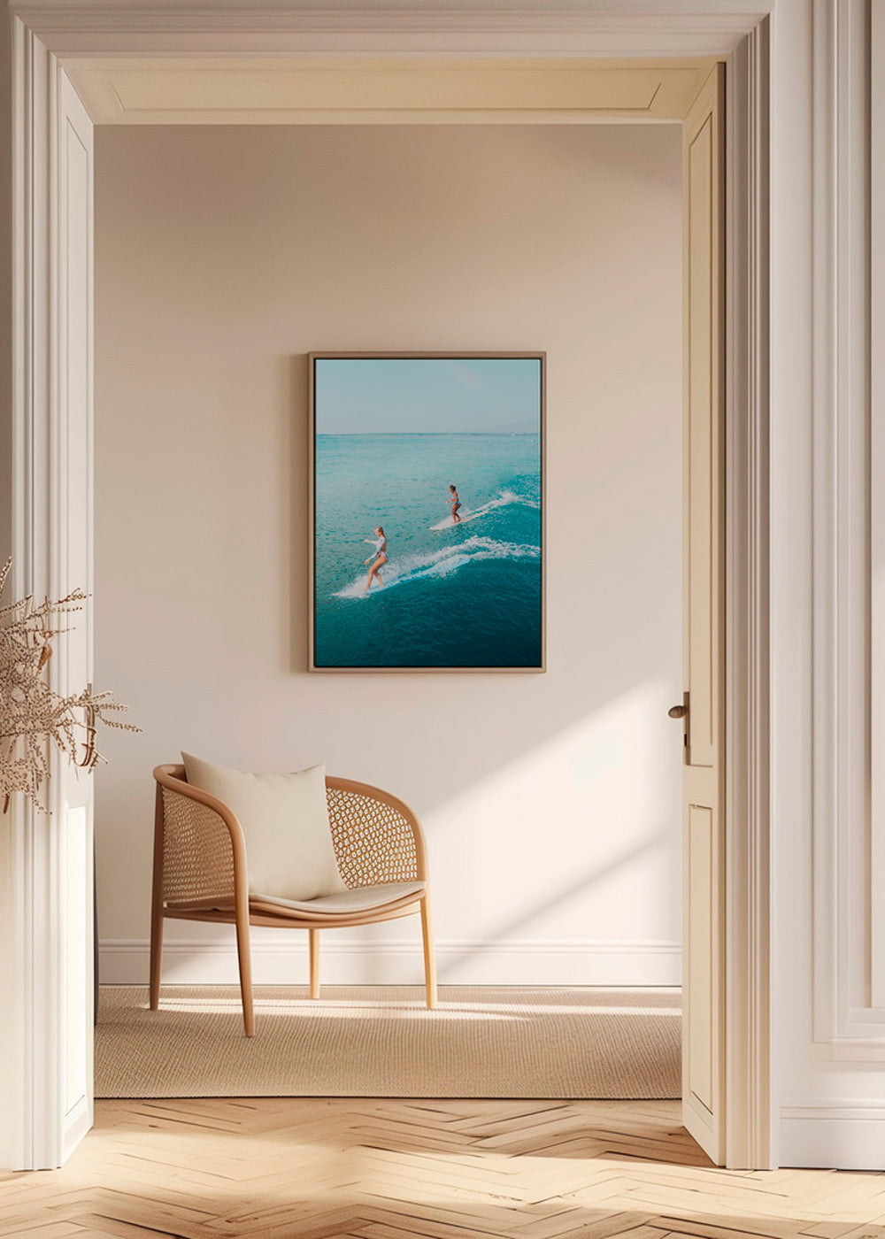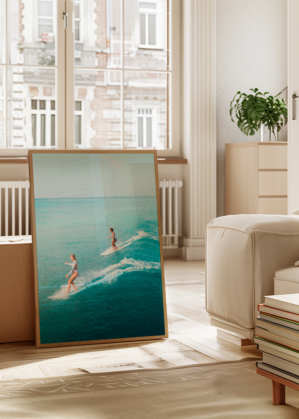This poster in the style of our surf posters and wall art, by the artist Gal Design, with shades of blue, and to hang in vertical position. Landscape decoration brings a breath of fresh air to any room. It's always a good time to freshen up your home.