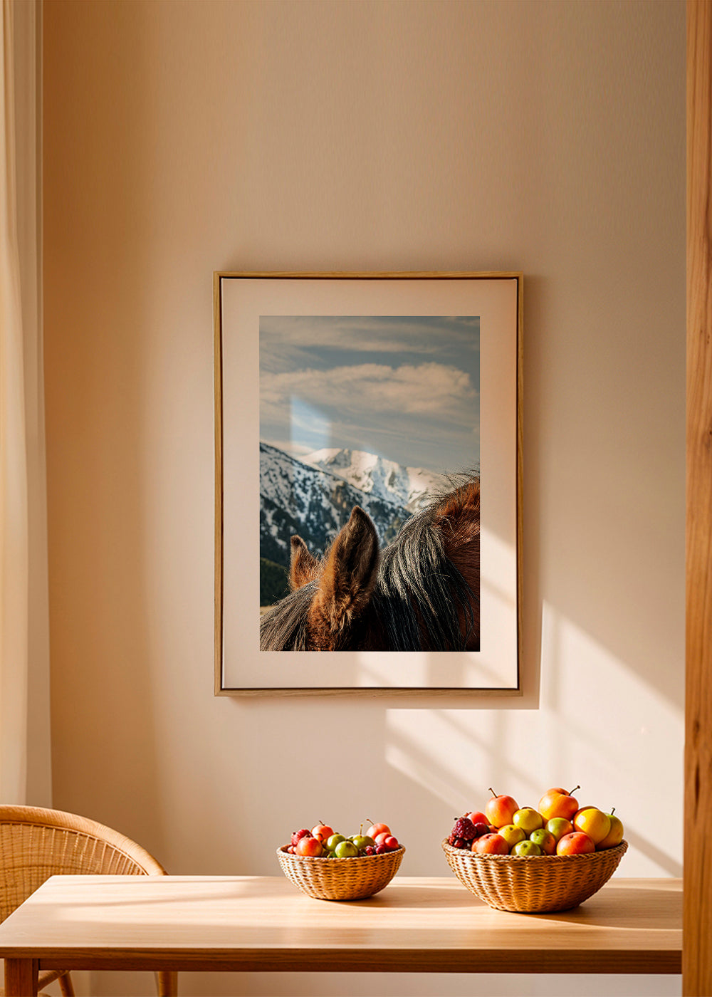 A poster from the horses wall art series, by the artist Ferran Feixas, in multicolor shades, and to hang in vertical position. Landscape decoration brings a breath of fresh air to any room. Transform your spaces with art.