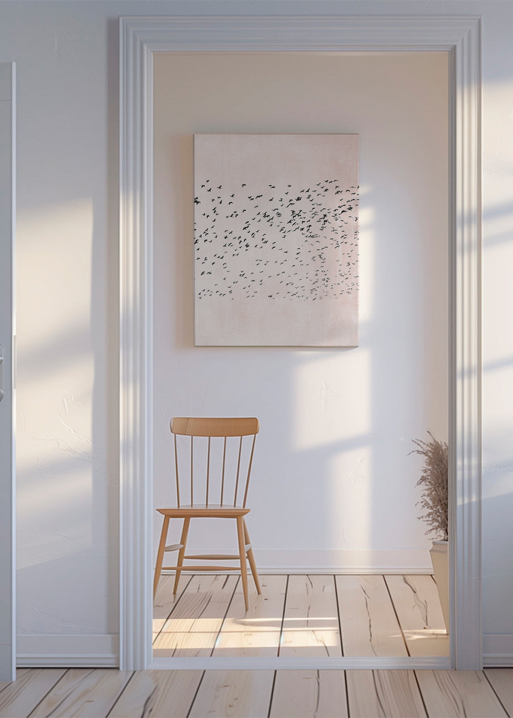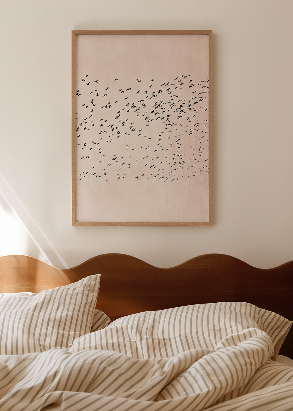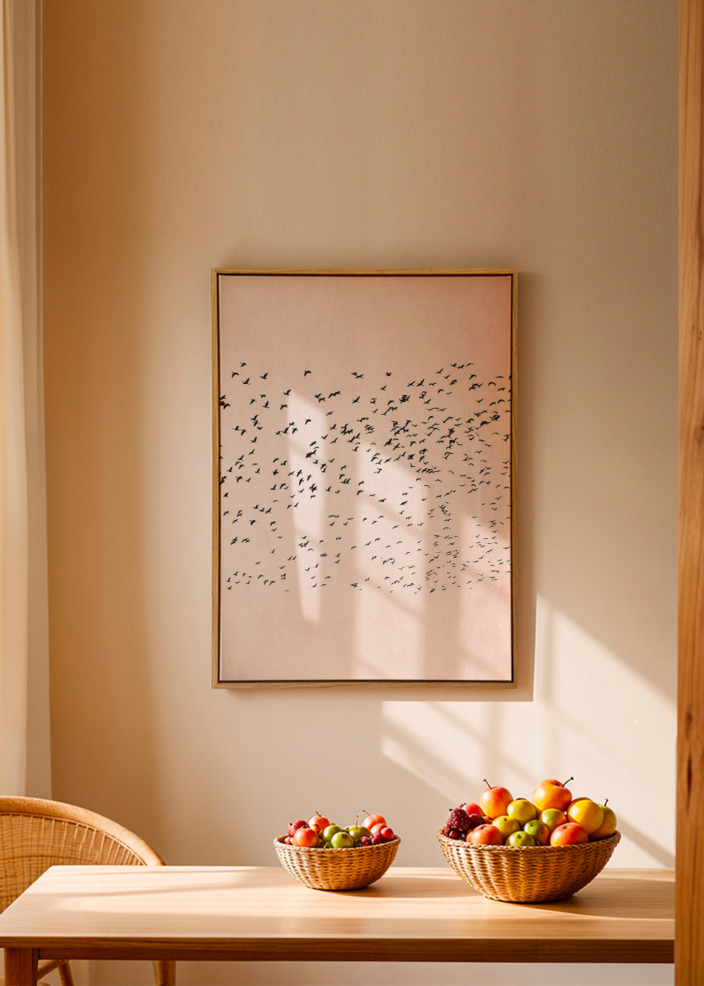 A print from the birds wall art collection, an original by KUBISTIKA, with tones of pink, and vertical layout. A design that gives off good vibes; walls decorated with mindfulness prints are trendy. A piece that will be a plus for any room.