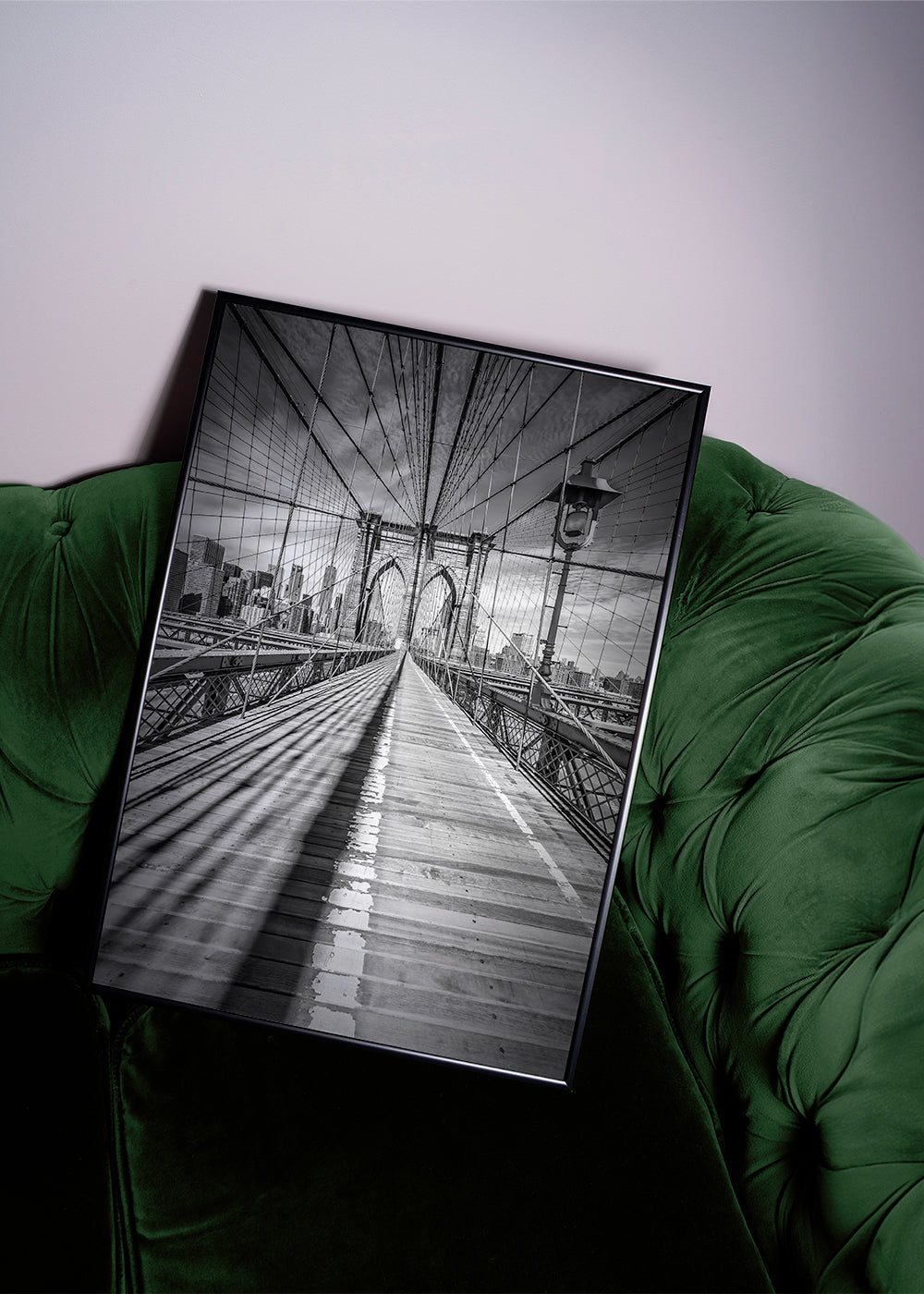 NEW YORK CITY Brooklyn Bridge black and white poster