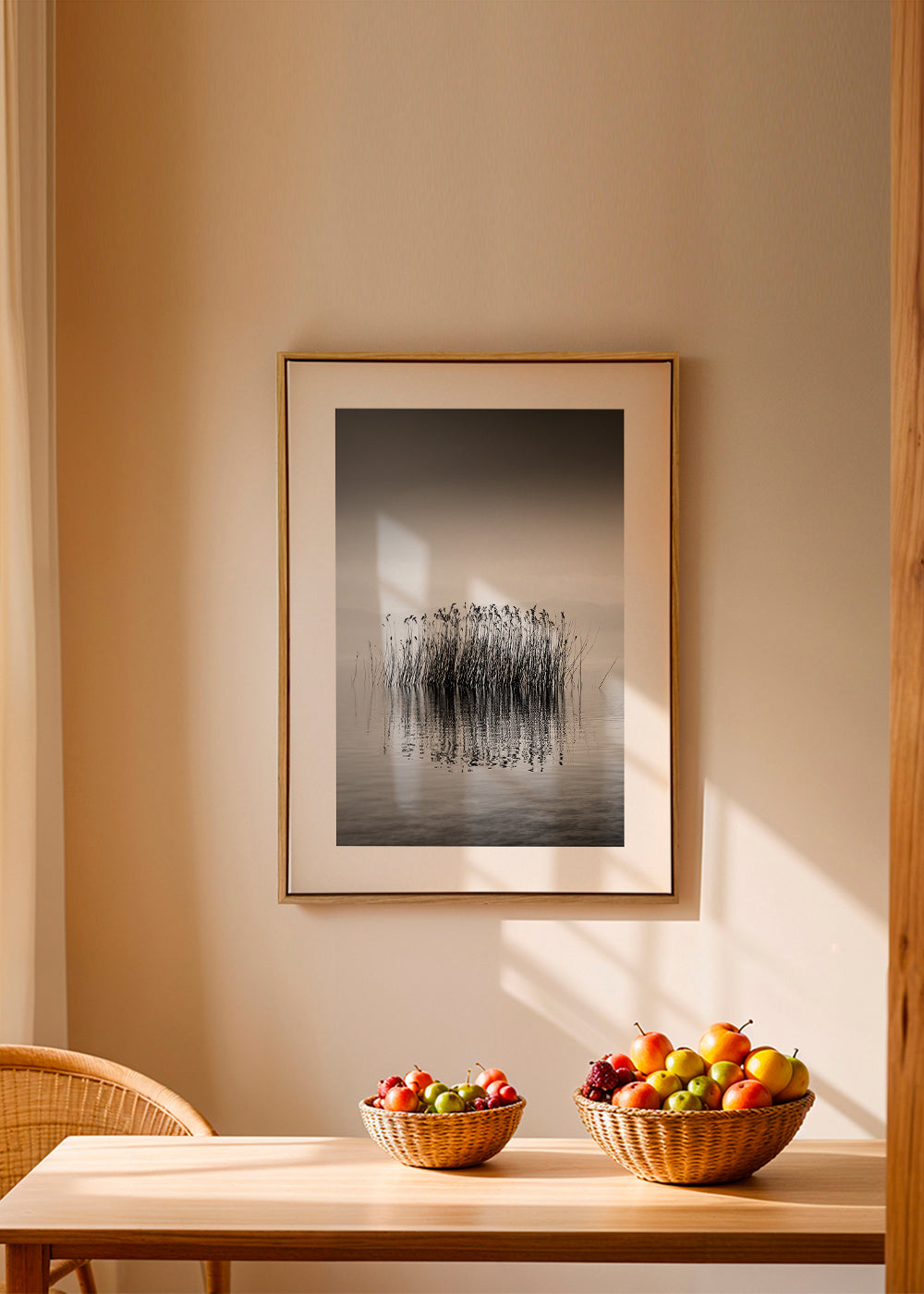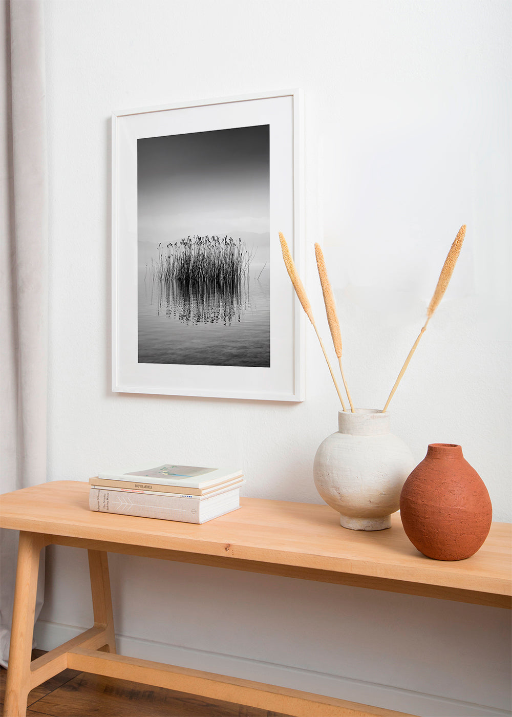 This poster in the style of our lakes wall art, in tones of black and white, and facing vertically. Nature in all its splendour, landscape prints convey a sense of calm. Get swept away by art. This piece includes a white strip framing the design to boost its style.