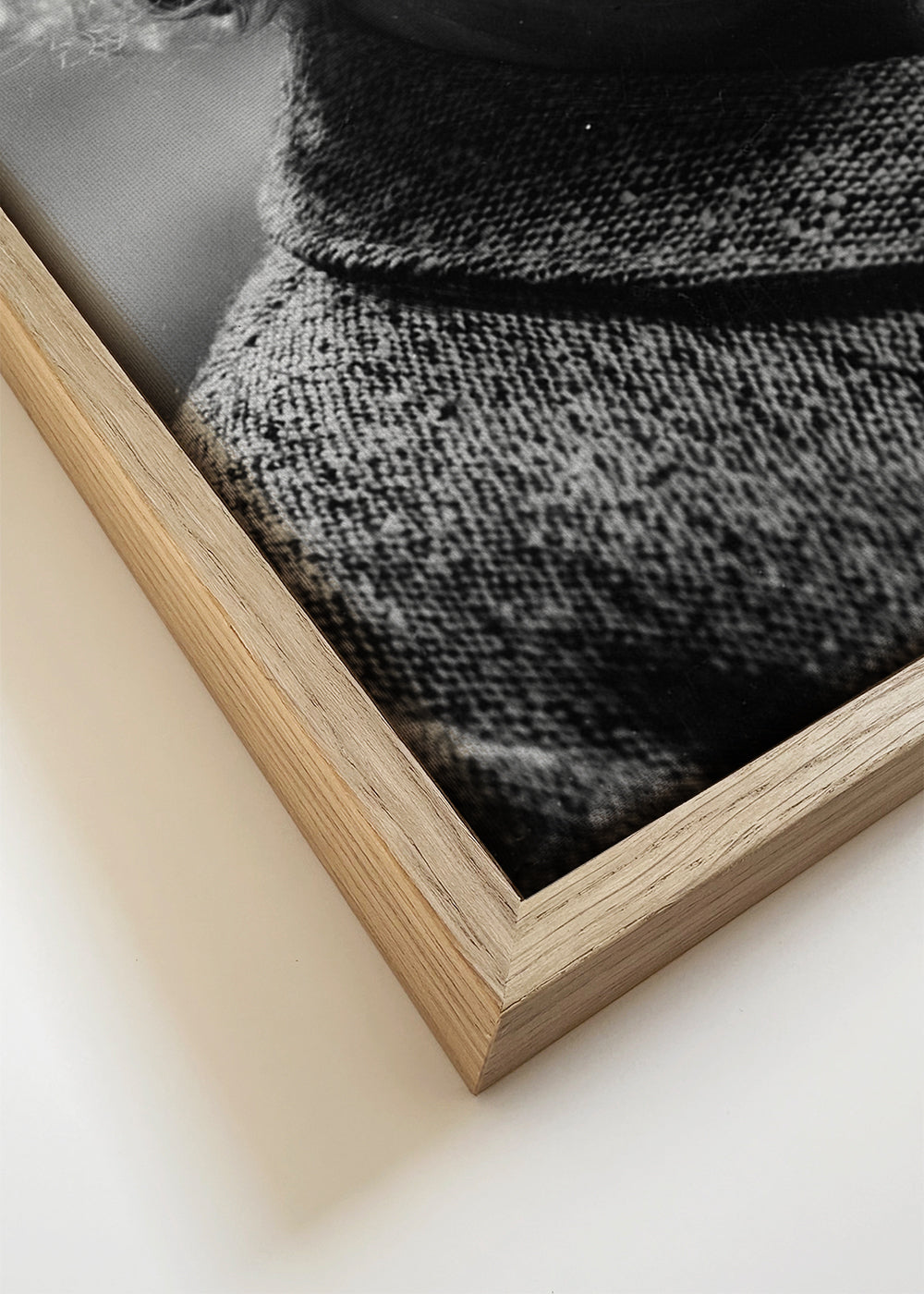 We work with solid wood and aluminum frames. All framed artworks are shipped already assembled and ready to hang. The front protection is high-clarity acrylic glass.