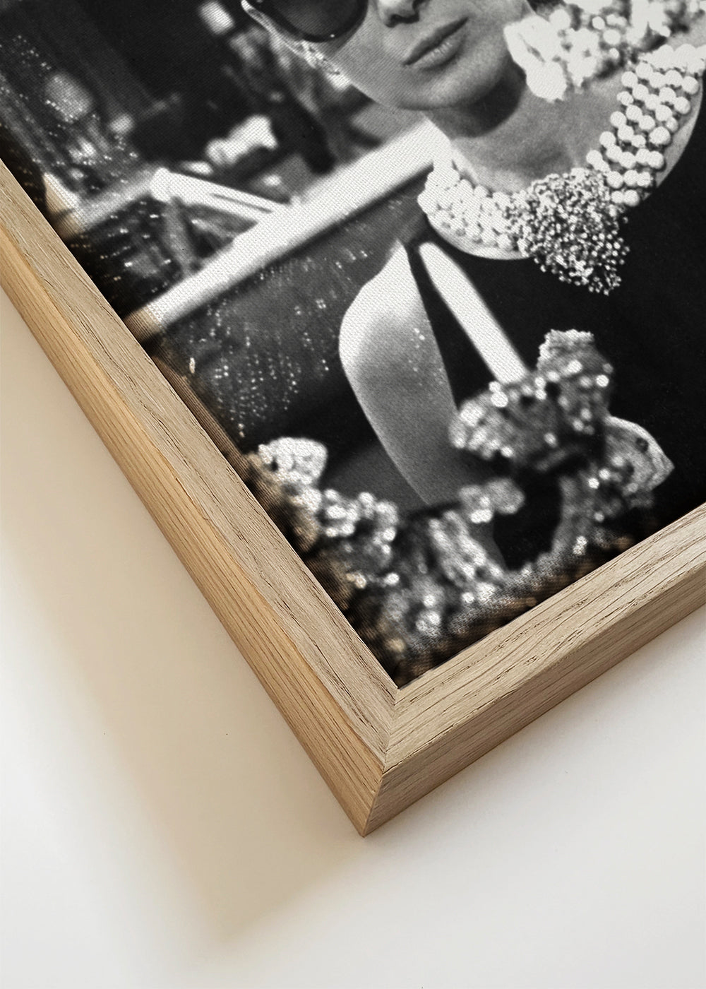 Black and white wall art Audrey Hepburn in Breakfast at Tiffany vintage photograph. - Square