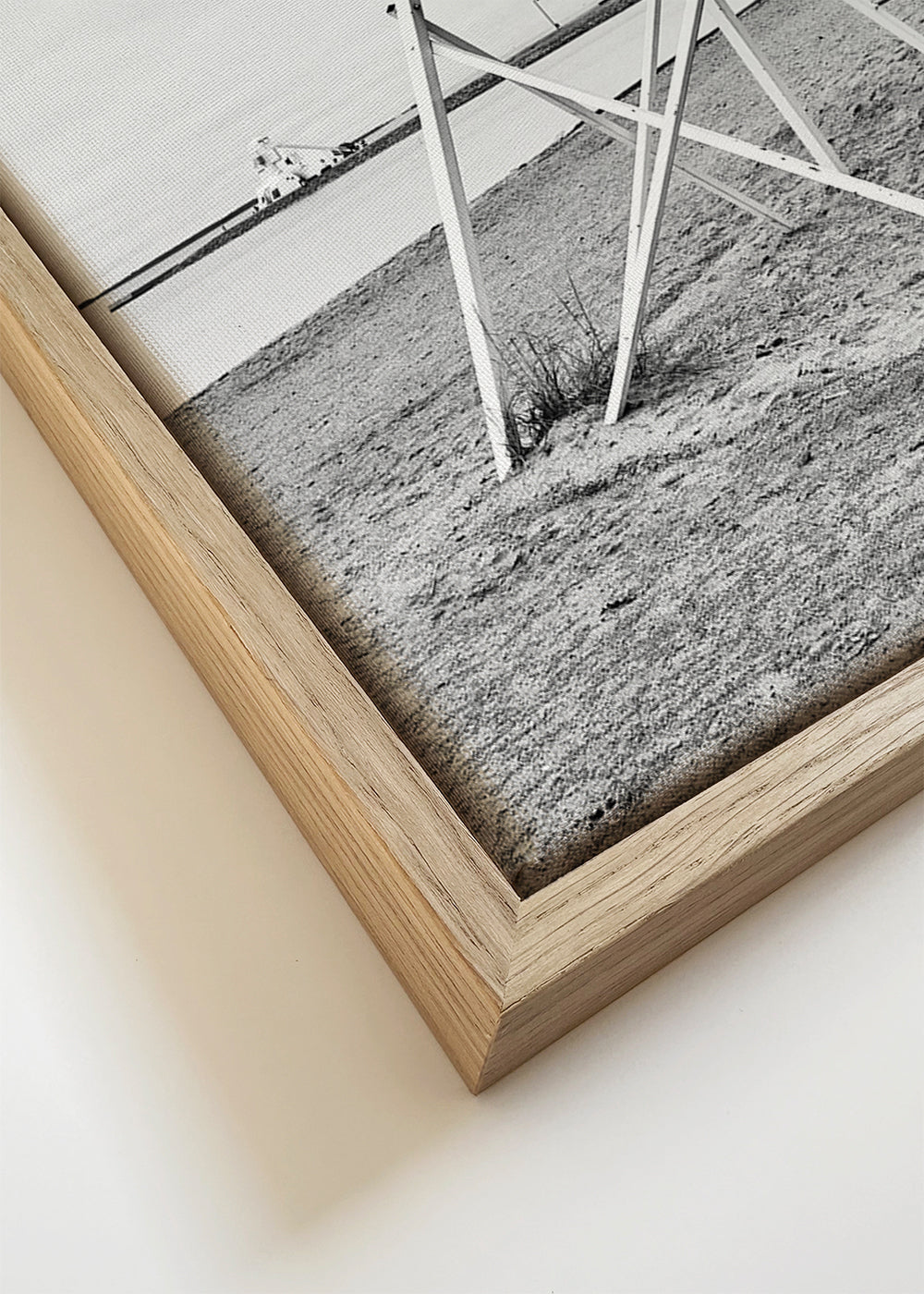 We work with solid wood and aluminum frames. All framed artworks are shipped already assembled and ready to hang. The front protection is high-clarity acrylic glass.