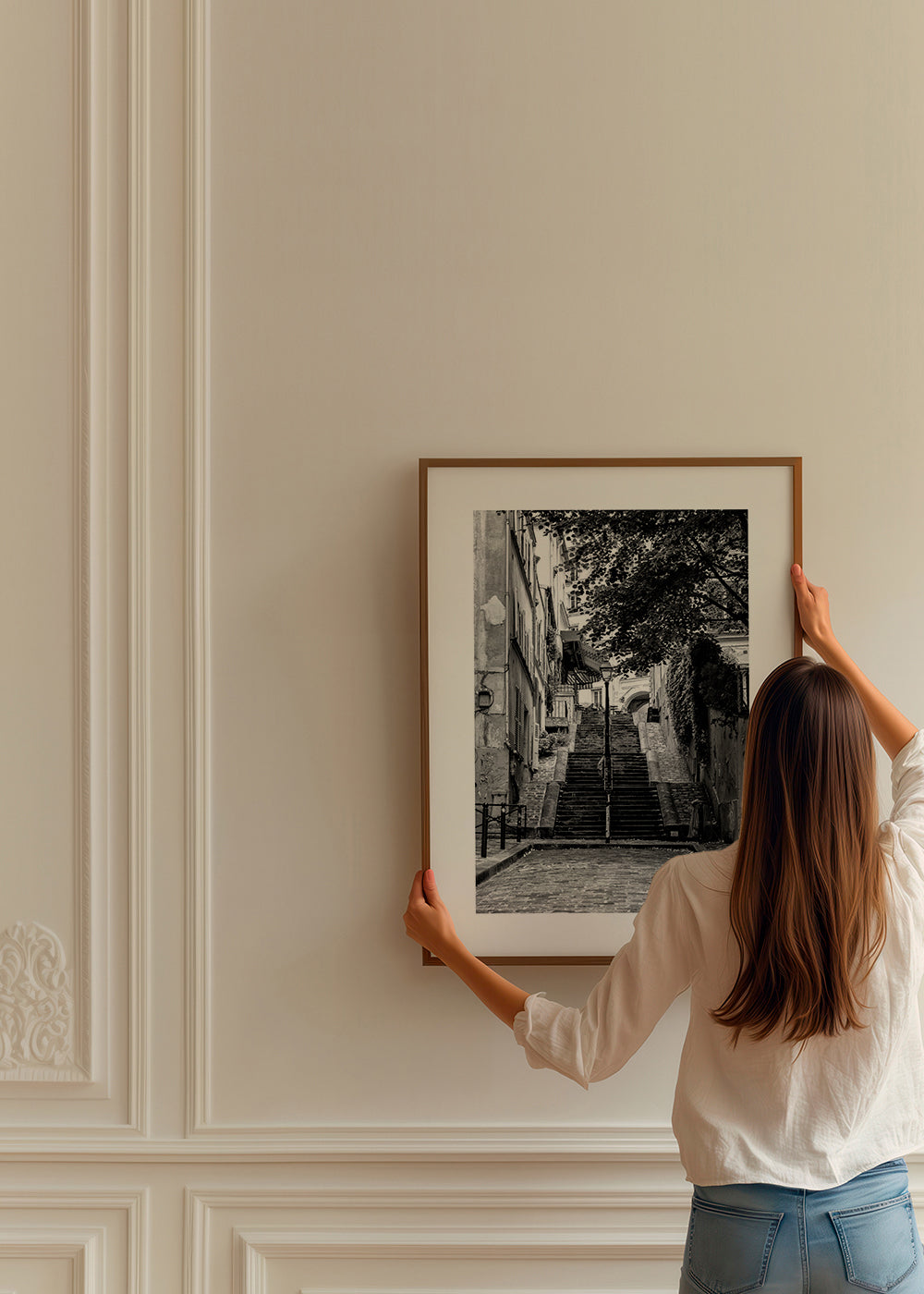 We work with solid wood and aluminum frames. All framed artworks are shipped already assembled and ready to hang. The front protection is high-clarity acrylic glass.