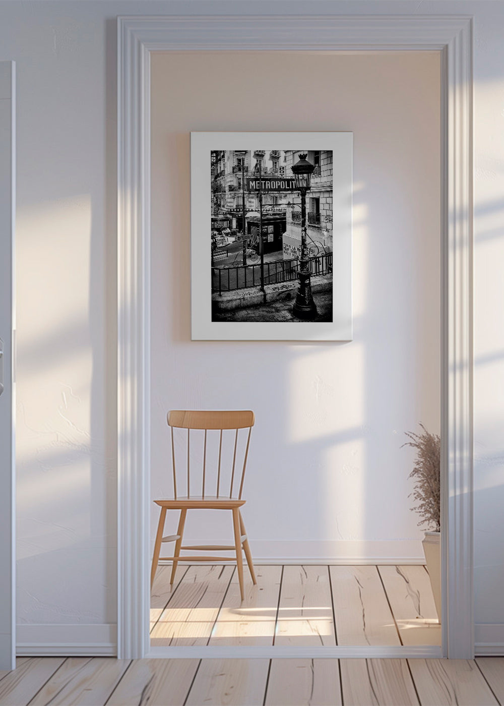 The passepartout is a white matt board that surrounds the poster to protect it from acrylic glass, and that also enhances the expressiveness of the work and emphasizes its details.