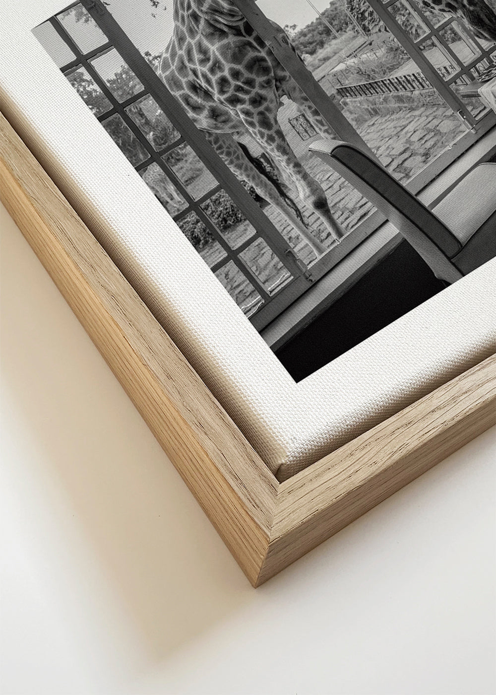 We work with solid wood and aluminum frames. All framed artworks are shipped already assembled and ready to hang. The front protection is high-clarity acrylic glass.
