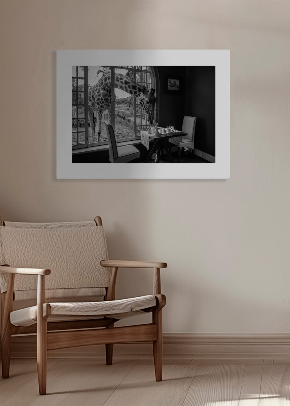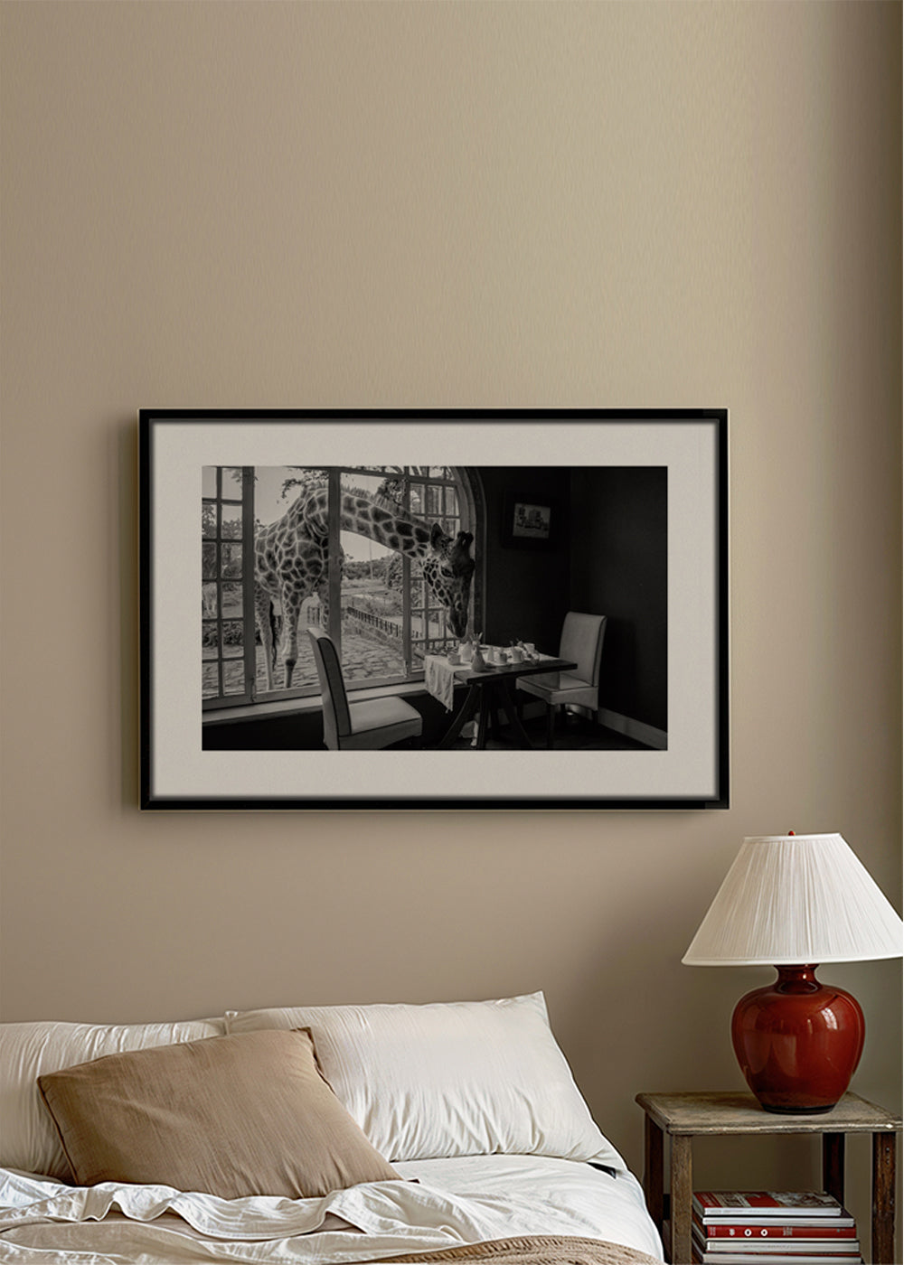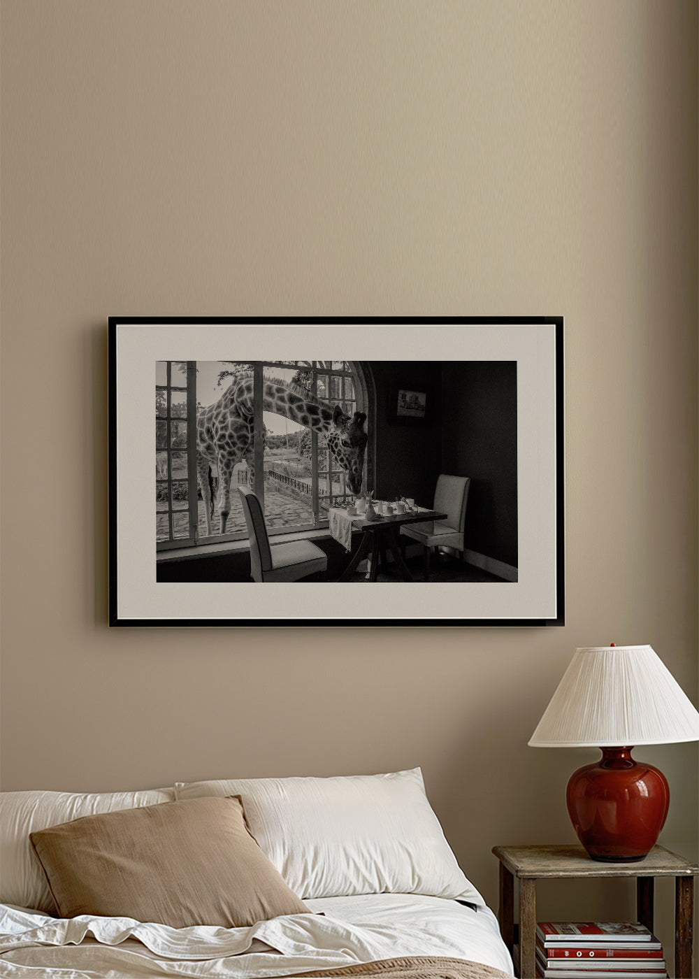 This print from the animal wall art category, in black and white shades, and to hang in horizontal position. Decorating with animal prints is a great way to make your walls more energetic. The final touch for your home decor. This piece includes a white strip framing the design to boost its style.