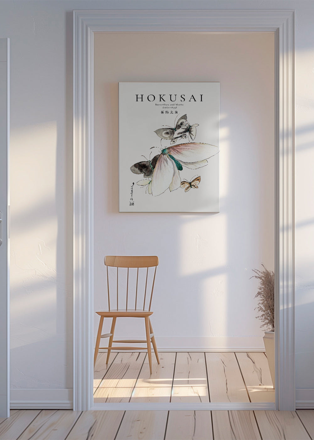 Black and white wall art Butterflies and Moths by Katsushika Hokusai